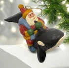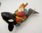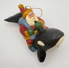 This charming ornament features Santa Claus joyously riding an orca whale. Crafted by Susan M. Smith in 1997, it exudes festive cheer and a touch of whimsy, making it an elegant addition to any holiday decor. The ornament is durable and lightweight, allowing it to hang gracefully on your Christmas tree. Very good condition. Measures about 4" tall. • Gold hanging cord • Crafted from durable materials • Lightweight for easy hanging • Unique festive theme Please see pictures for condition. If you have any questions, please let me know. Thank you for visiting our Ebay Shop. We are happy to consider all reasonable offers. Discounted combined shipping is available for multiple item purchases. We pride ourselves on customer service. If you are not happy with your purchase, please contact us within 30 days for a hassle free return.