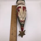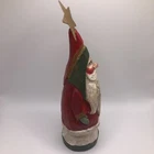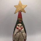 8.25 inches There is small crack on stand underneath Santa. See last photos Please enlarge and look at all photos closely for condition.