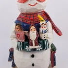 House of Hatten by Rawson Christmas Messengers Snowman Figurine Issue date 2000 Snowman is holding Angel/Doll, Santa and Snowman Skates, Mittens and Sled hang from his belt Signed 12" tall x 6.25" wide x 4.25" deep