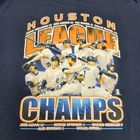 Celebrate baseball history with this commemorative Houston League Champions t-shirt featuring the team's star players. Perfect for game days, casual wear, or showing team pride. The classic navy design with vibrant orange and blue graphics makes this a must-have collector's item for any true baseball fan. Type: T-Shirt Color: Blue Department: Men Fit: Regular Sleeve Length: Short Sleeve Pattern: Graphic Print Neckline: Crew Neck Features: Limited Edition, Commemorative Material: Cotton Fabric Type: Jersey Keywords: houston baseball, champions tshirt, baseball memorabilia, sports collectible, team graphic, navy blue tee, commemorative shirt, baseball fan gear, houston league, sports apparel
