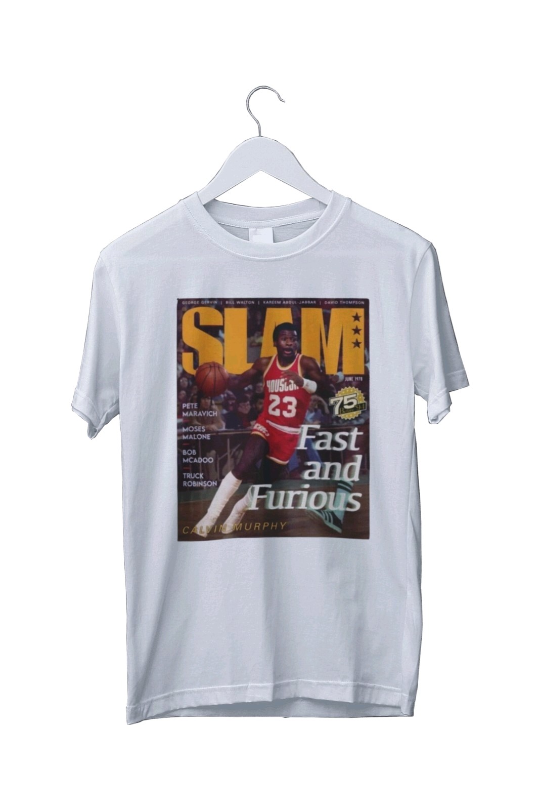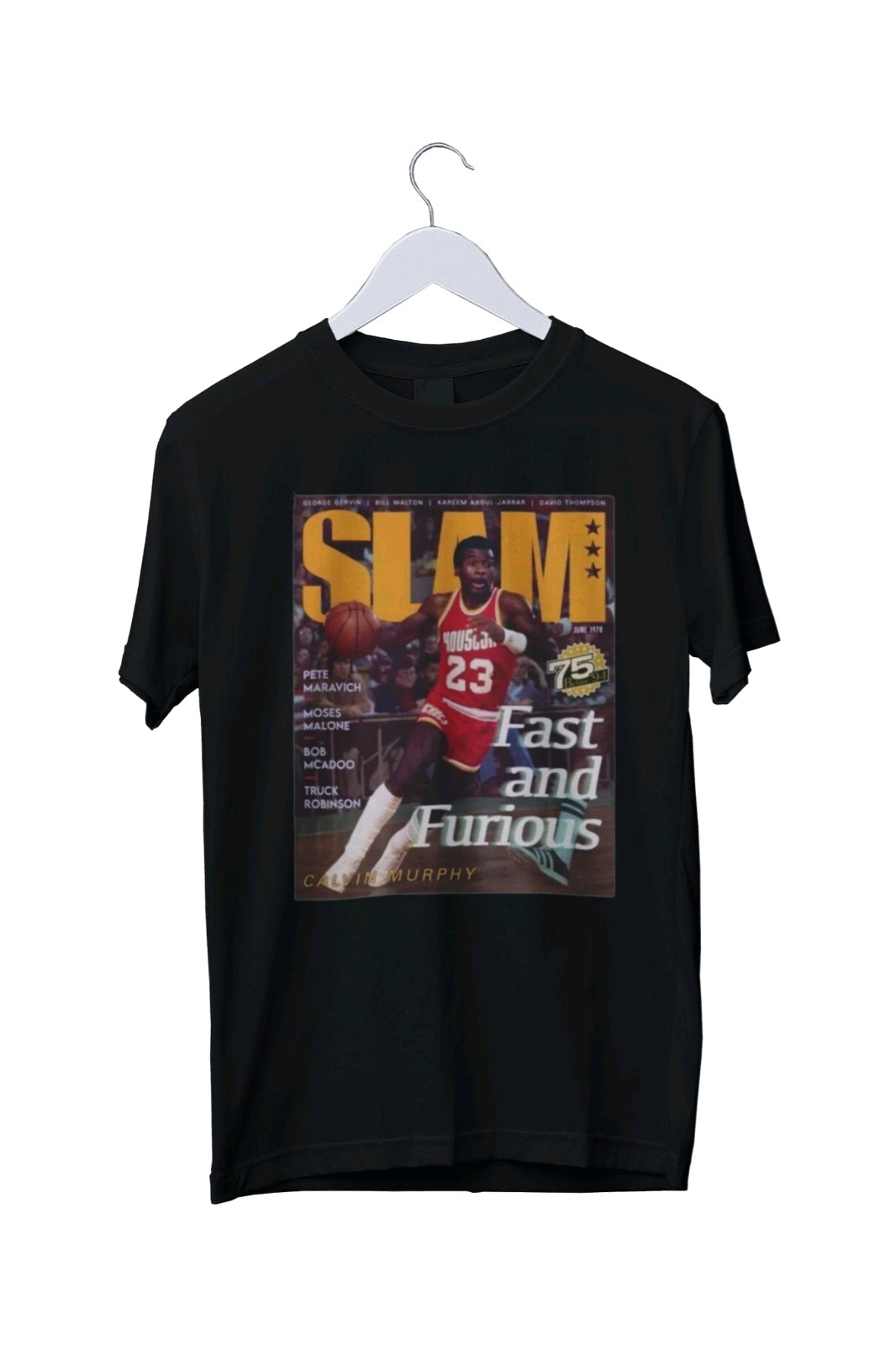 The Houston Rockets NBA SLAM Graphic Print Men's Unisex T-Shirt is a classic black t-shirt featuring a crew neck and short sleeves, made from 100% cotton jersey fabric. The limited edition design includes a graphic print with the team's logo, suitable for all seasons and themed around movies, anime, music, cartoons, and funny retro styles. With sizes ranging from small to extra-large, this t-shirt is a must-have for fans of the Houston Rockets and collectors of unique, eye-catching clothing pieces.