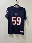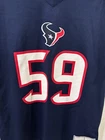 Show your support for the Houston Texans with this vibrant NFL-licensed jersey, perfect for any young fan eager to mimic their favorite player's on-field look. The jersey features the number 59 of Whitney Mercilus, rendered in bold blue, the team's official color, which stands out in the crowd as you cheer on the team. Crafted with attention to detail, this jersey is designed to replicate the authentic NFL experience, complete with breathability and comfort for game-day activities. Made in Cambodia, it's an officially licensed product, ensuring you get the highest quality for any NFL memorabilia collection. Whether for a game or just as a casual fan apparel, this jersey is a must-have for any Texans enthusiast.