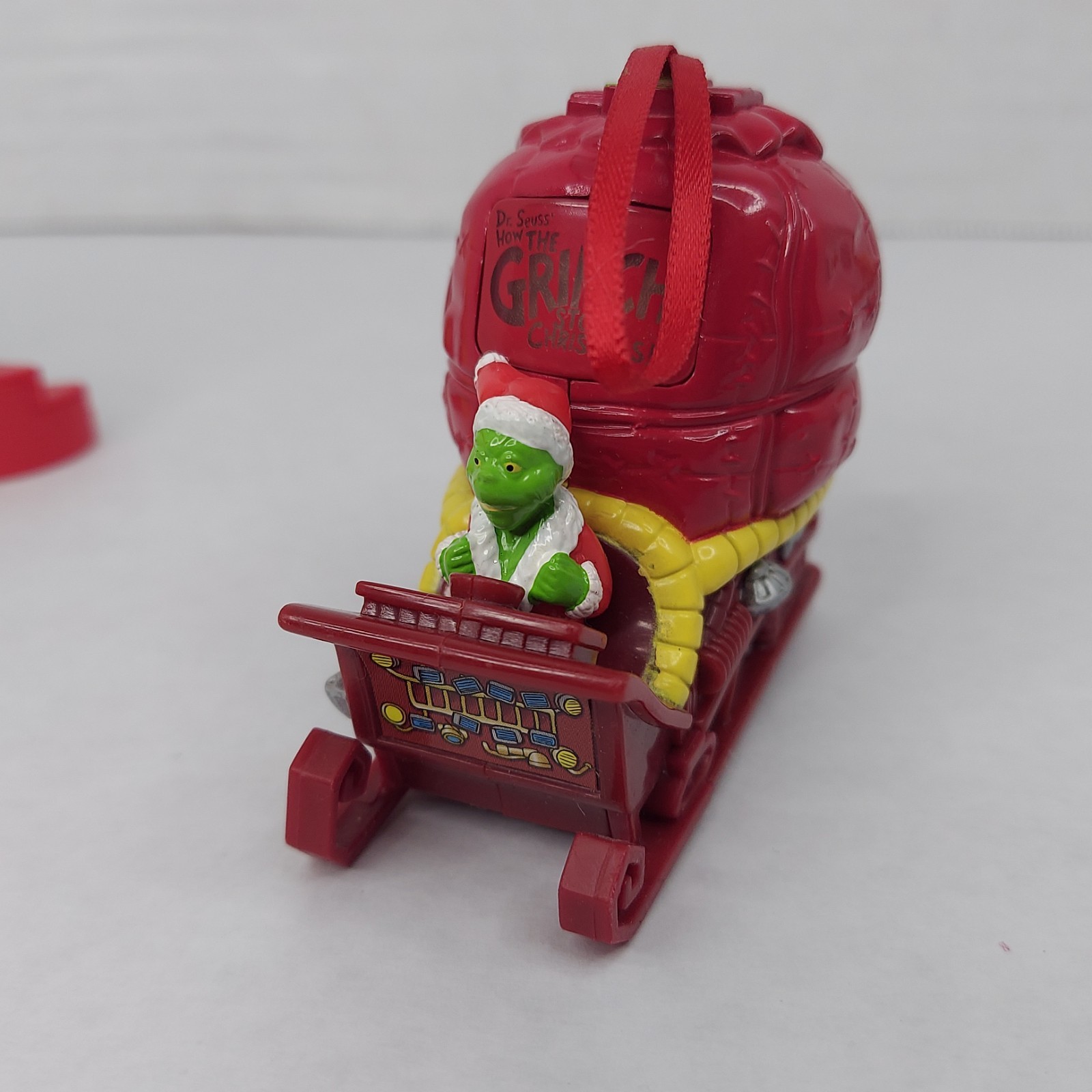 Wendys Kids Meal Toy Lot How The Grinch Stole Christmas Sleigh Max Dog Ornaments 3 ornaments Who house in yellow Grinch on santa sled and max in snow. Please see the pictures