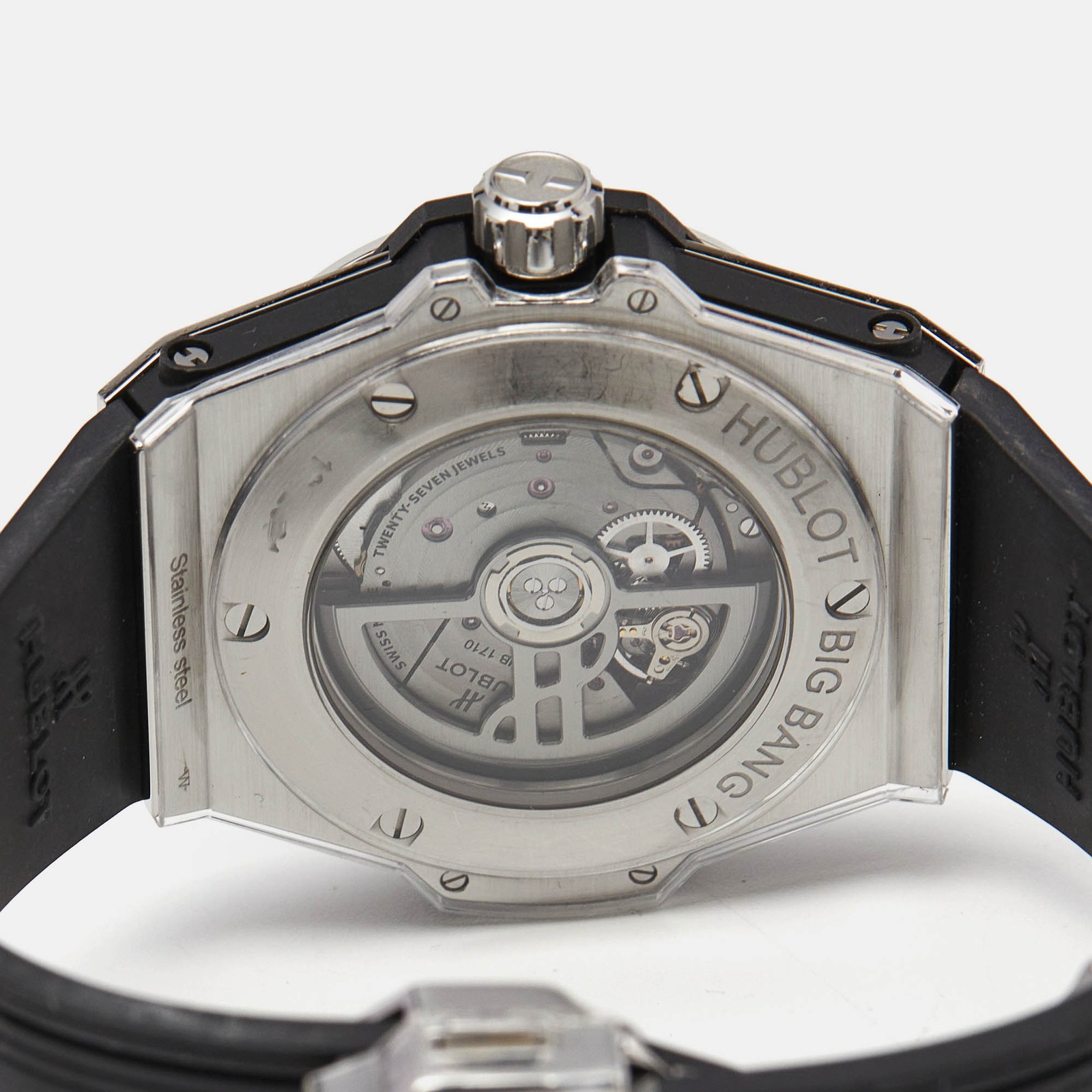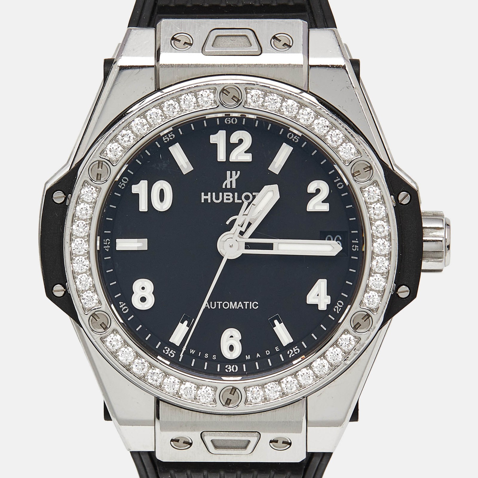 The Hublot Big Bang One Click 465.SX.1170.RX.1204 is where avant garde meets effortless glamour. At 39 mm, its stainless steel case is framed by a diamond set bezel, adding sparkle to the watch’s bold black exterior. The dial maintains a sleek and monochrome aesthetic, featuring distinct hour markers and a date window at 3 o’clock. Inside, a self winding movement keeps time with precision, protected by the robust architecture that defines Hublot’s modern watchmaking.Certified by The Luxury Closet - This item has gone through a detailed authentication process overseen by our experts. We offer a lifetime guarantee of authenticity on all our items. Import duties, taxes and charges are not included in the item price. These charges are the buyers responsibility. Please check with your country’s customs office to determine what these additional cost will be prior to buying. Our eBay Store About Us Contact Us Add to Favorite Sellers Hublot Black Stainless Steel Diamond Rubber Big Bang One Click 465.SX.1170.RX.1204 Women's Wristwatch 39 mm $9244.4 The Hublot Big Bang One Click 465.SX.1170.RX.1204 is where avant garde meets effortless glamour. At 39 mm, its stainless steel case is framed by a diamond set bezel, adding sparkle to the watch’s bold black exterior. The dial maintains a sleek and monochrome aesthetic, featuring distinct hour markers and a date window at 3 o’clock. Inside, a self winding movement keeps time with precision, protected by the robust architecture that defines Hublot’s modern watchmaking. Product Details Brand Color Black Dimensions Material Stainless Steel Size 39 mm Outsole Width Outsole Length Heel Height Includes Certified by The Luxury Closet This item has gone through a detailed authentication process overseen by our experts. We offer a lifetime guarantee of authenticity on all our items. How We Check The in-house team of experts at The Luxury Closet is highly trained to verify the authenticity and the condition of the luxury products. They ensure that only 100% authentic items are put on sale.The evaluation process is unique with its own mix of assessment criteria and differs according to the category. Each item is evaluated based on the following combination of hallmarks, hardware, stitching, symmetry, material, craftsmanship, stamping, codes, hologram stickers, and packaging. Our authenticators also check if the items have been modified or amended (e.g., aftermarket diamonds, replaced batteries, repaired bags, etc.) International Buyers Import duties, taxes and charges are not included in the item price. These charges are the buyers responsibility. Please check with your country’s customs office to determine what these additional cost will be prior to buying.
