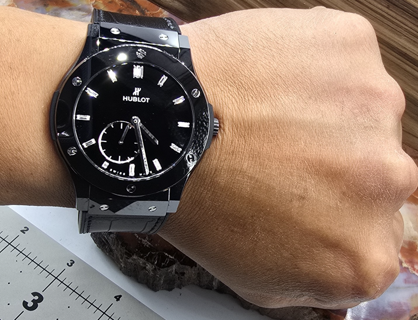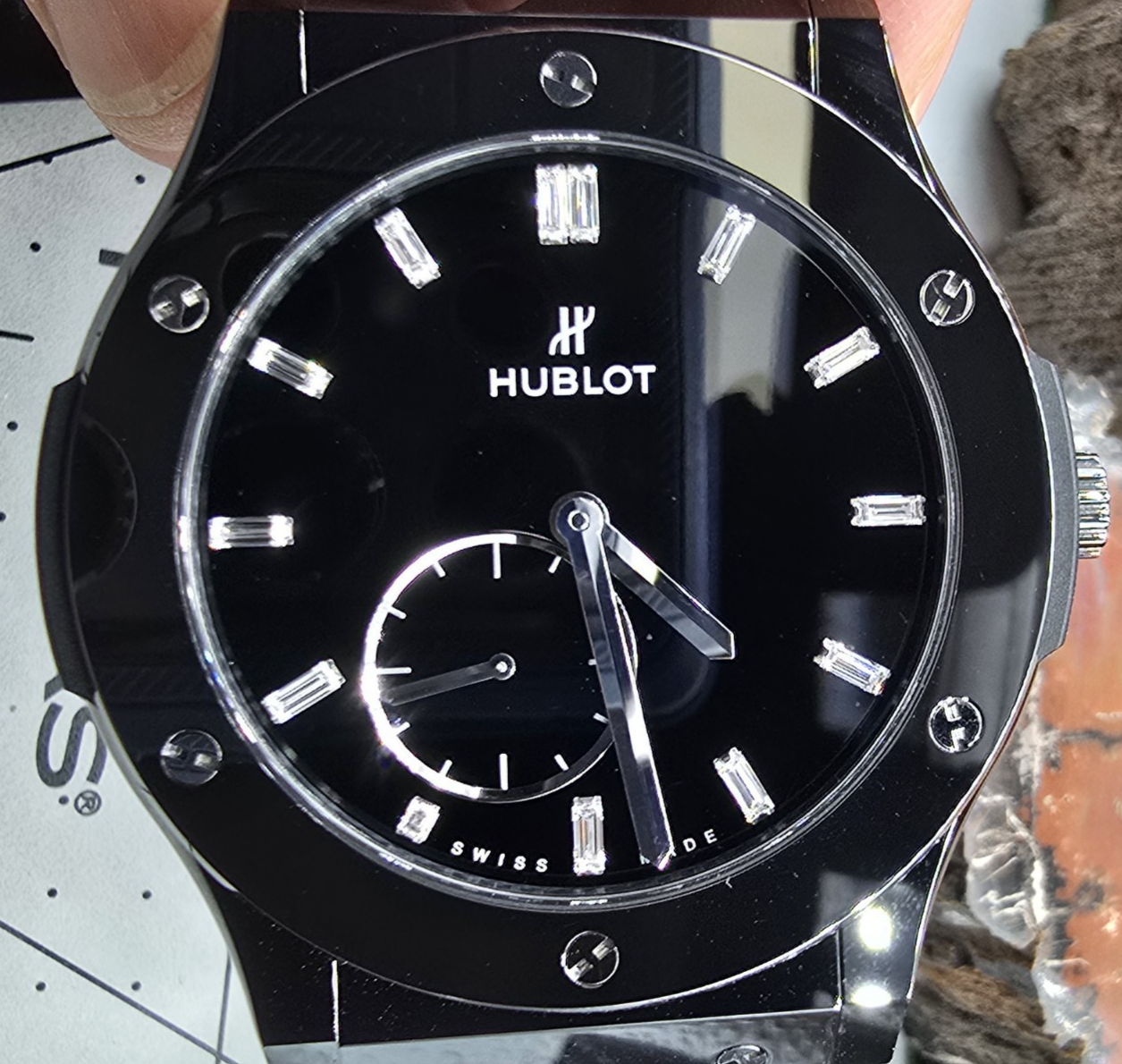 Hublot Classic Fusion Factory Diamond dial "Night-Out" Ceramic/Titanium Jet Black on Black 45mm Mens Limited Edition only 100 units made. Lowest price on ebay . Comes with paperwork card and hard drive . This watch was worn for about two weeks. This is a super clean looking watch. Near Mint condition. Please review picture to avoid returns. ITEM031725PO4000