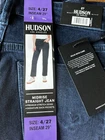 Features: Hudson Jeans® Colors: Black (Night Time), Blue (Obscurity) Belt loops to accommodate a 2 in. wide belt Branded metal button and YKK zipper Straight leg silhouette Made in Cambodia Content: 94% Cotton | 5% Polyester | 1% Elastane Exclusive of decoration Approximately 427 GSM Heavyweight Sizing: Sizes: 12/32 Size Conversion: 2/26 = XS | 4/27 = S | 6/28 = S | 8/29 = M | 10/30 = M | 12/32 = L | 14/34 = L | 16/36 = XL | 18/38 = XXL Inseam (in): 29 Model is 5'9" wearing size 4 Care Instructions: Machine wash cold, normal cycle, separately Do not bleach Tumble dry gentle cycle, low temperature Iron at low temperature