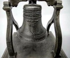 Made by Hudson a Pewter Swinging (working condition) "Liberty Bell" #703. It is approximately 3" X 3" X 2.5 inches. Color of the item may vary from the photographs depending on lighting or monitor pixels.