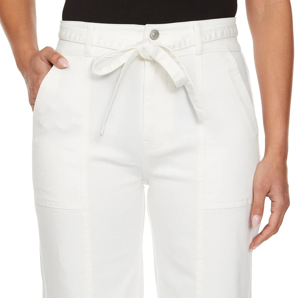 HomeHudson Women’s Wide Leg Belted Jeans, Cream, Size 8/29