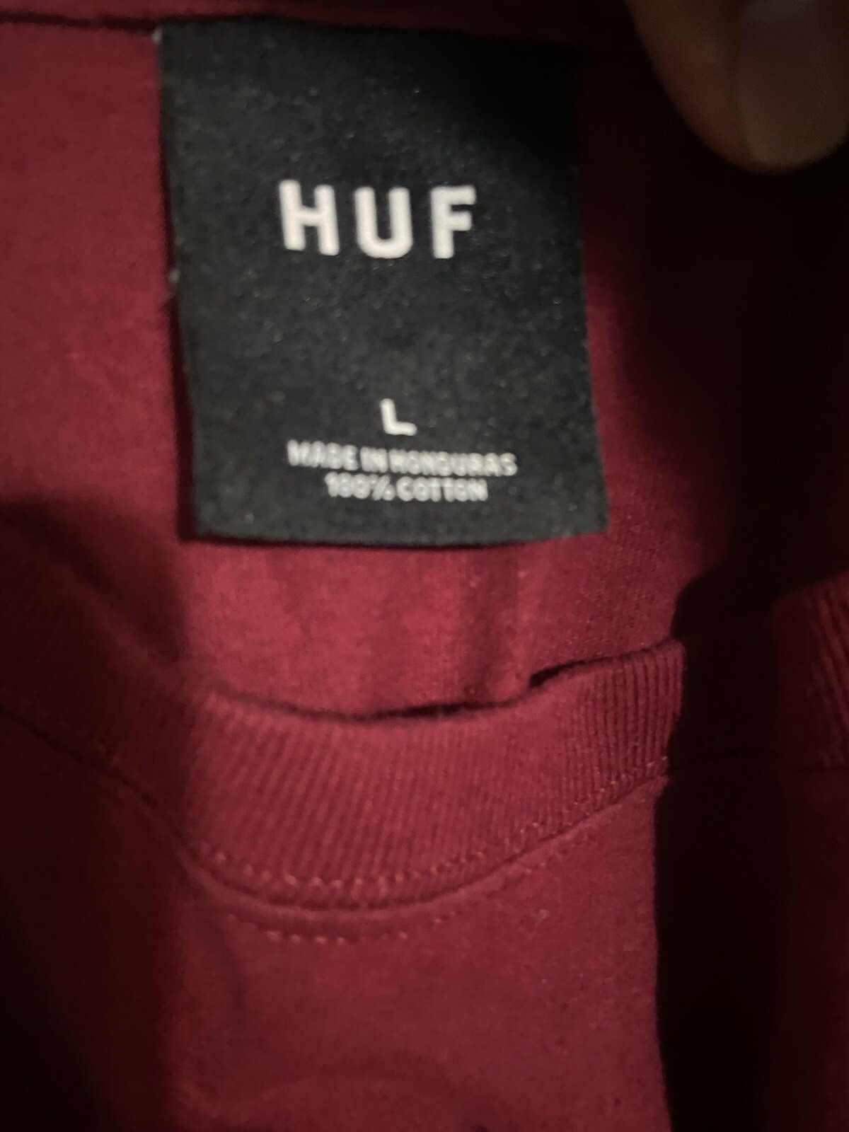 Huf Long Sleeve Size L Color is a brighter in person (I do not have good lighting) please check size tag for correct color.
