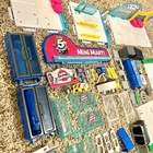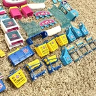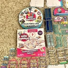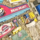 Huge Lot Of Zuru Mini Brands Mini Mart Toy Store Parts With Shelves Bags Carts. This lot includes parts from multiple mini mart sets. One of the blue cabinets is missing a clear screen. This lot includes the board game and one toy collection case, both do not include the mini brands toys as shown. Please see all photos for details and condition.
