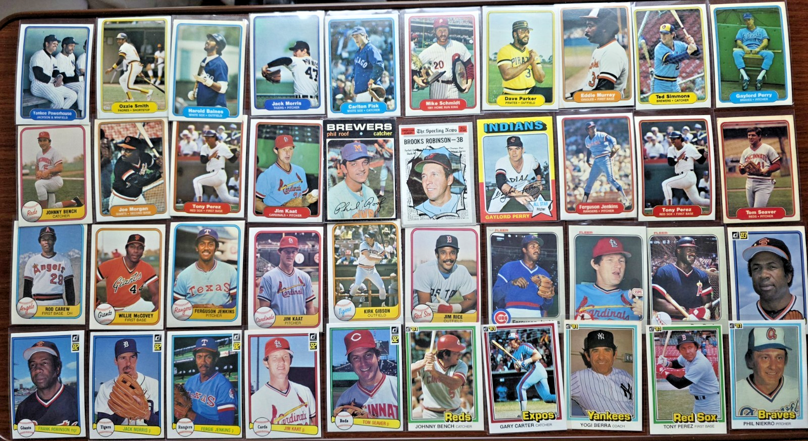 Over 1200+ Cards. 1970's to 1990's. Few Modern Day Cards (Relic, Numbered Cards). See Pictures. Rookies, All-Star , Hall of Fame Players Only. No duplicates and wide variety of brands . No Common Players! Condition of cards varies from good to mint. That’s only .14 cent per card. Great Deal! Not all cards are shown in pictures.