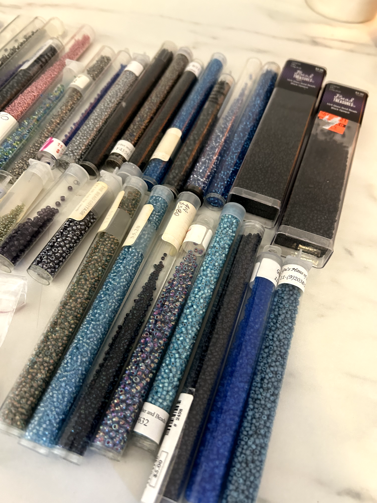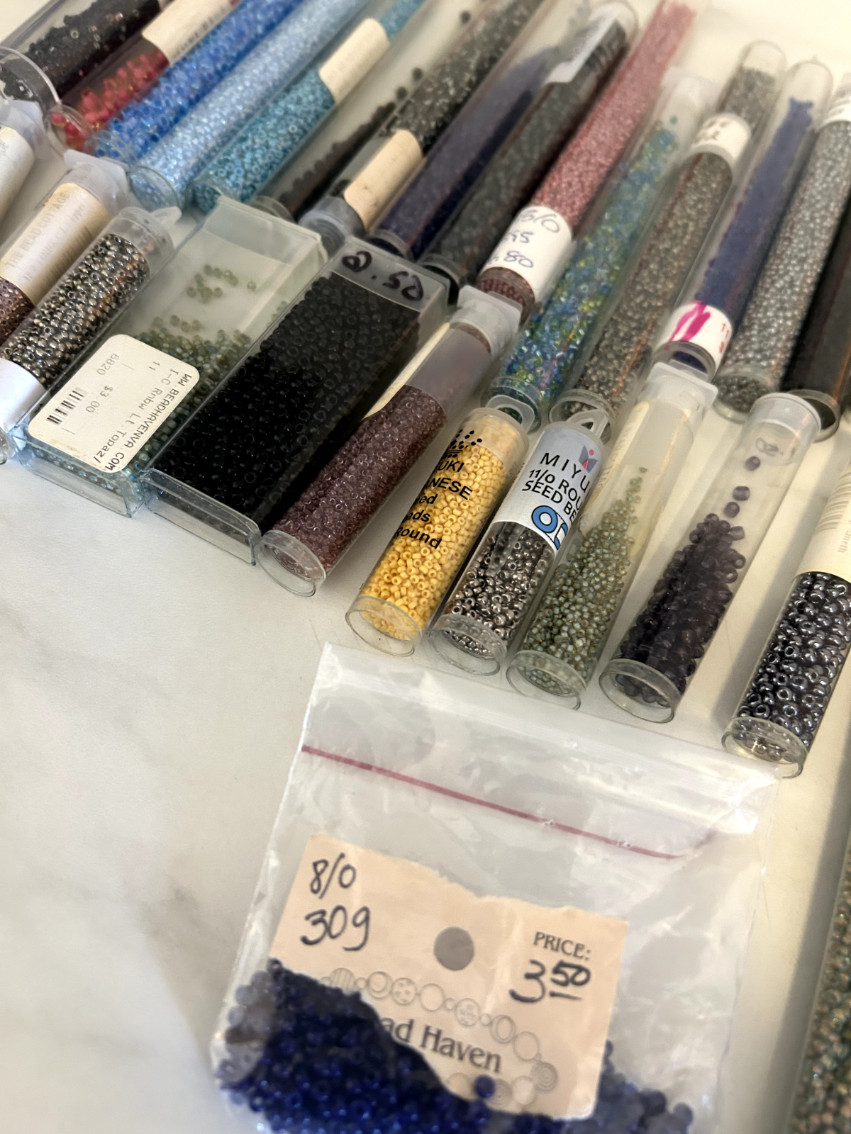 43 total tubes/ bags of mixed seed beads of many colors, styles, and sizes. Czech/ Toho/ Miyuki. Each tube originally ranged in price from $1-$6 back in the 2000's, worth more today. Mix of unopened and partially used tubes.