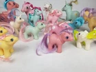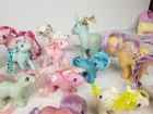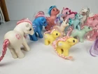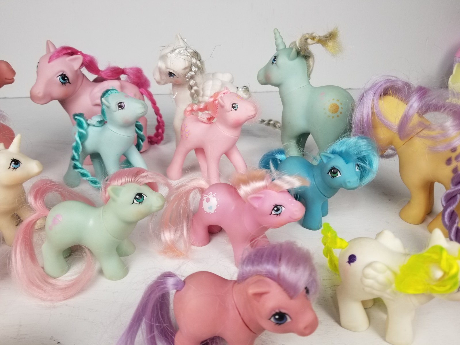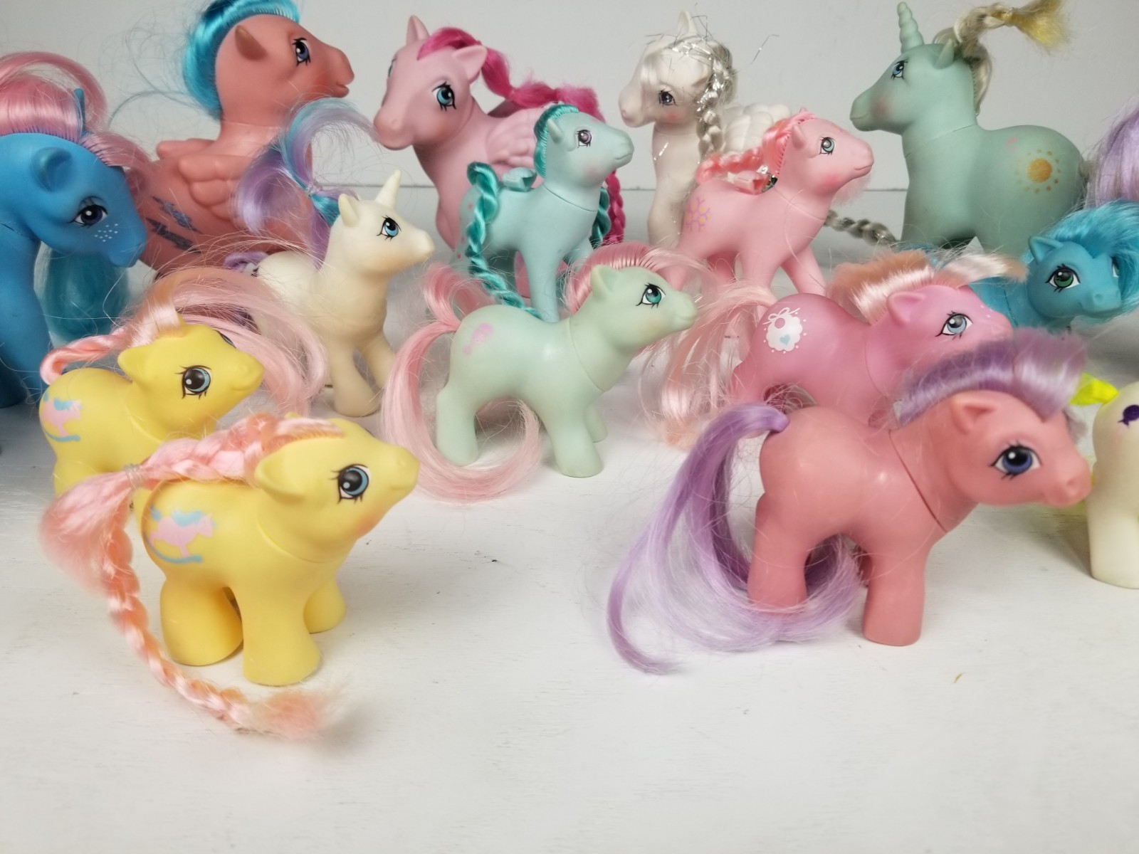 This vintage 1980s My Little Pony G1 MLP lot includes 18 action figures and rare accessories. These collectible toys are part of the beloved franchise and are in 1:8 scale. With a nostalgic charm and a variety of characters to collect, this lot is perfect for any My Little Pony fan looking to expand their collection with a piece of 80s nostalgia.