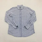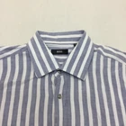 Hugo Boss Linen Mix Shirt Mens 17.5" Collar Button Up Long Sleeve Striped Grey