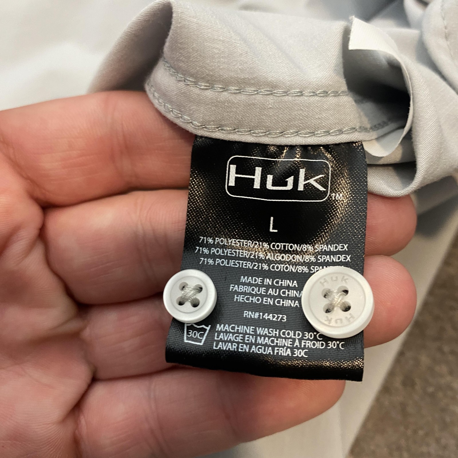 Huk Fishing Shirt Mens Large Gray Button Up Short Sleeve Performance Outdoor Condition: Gently worn, no visible flaws Material: 71% polyester, 21% cotton, 8% spandex for lightweight performance comfort Classic button down collar with button front closure Single chest pocket with Huk logo patch Tag size: Large (L) - Mens Perfect for fishing, outdoor activities, or casual wear