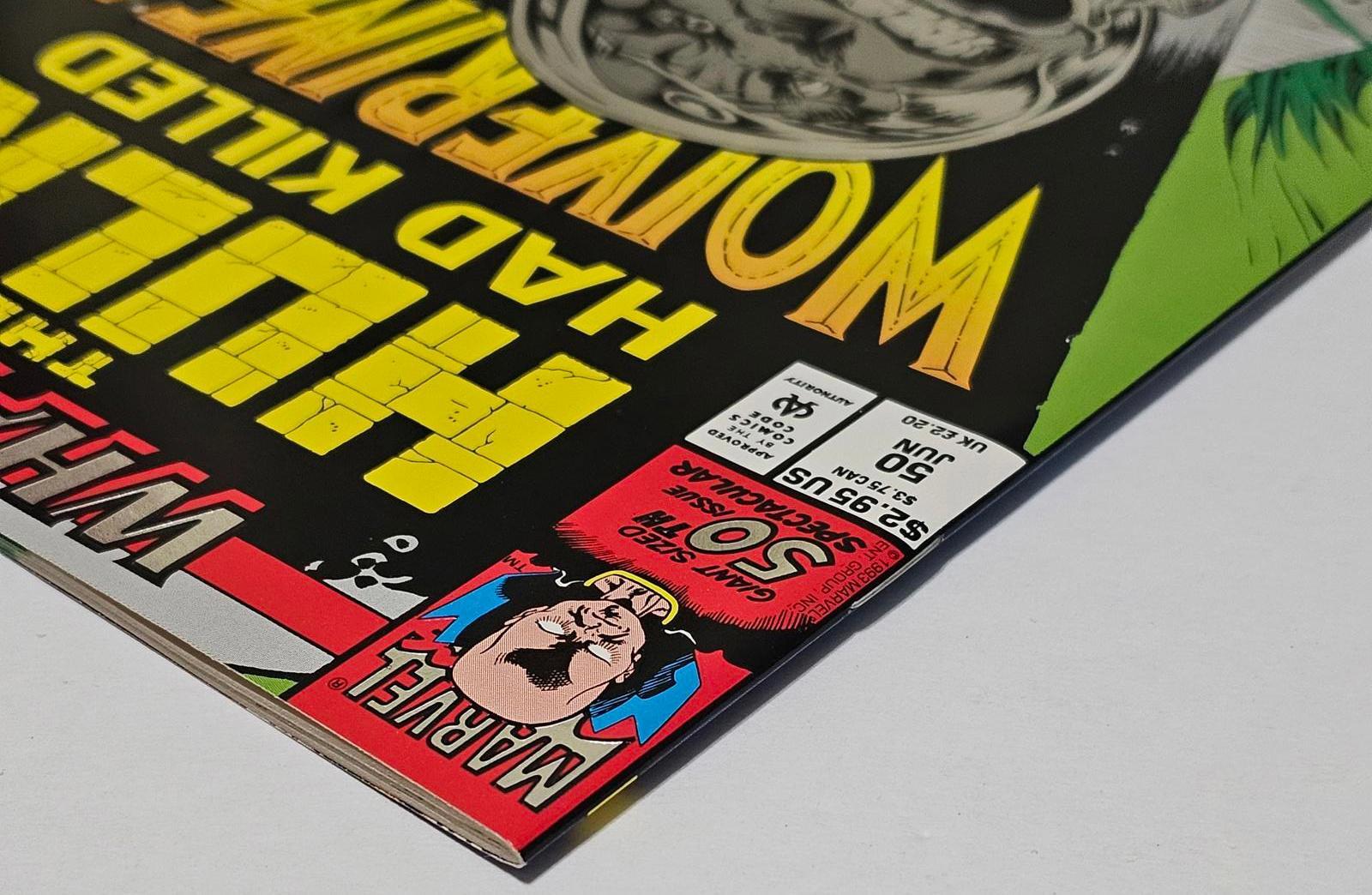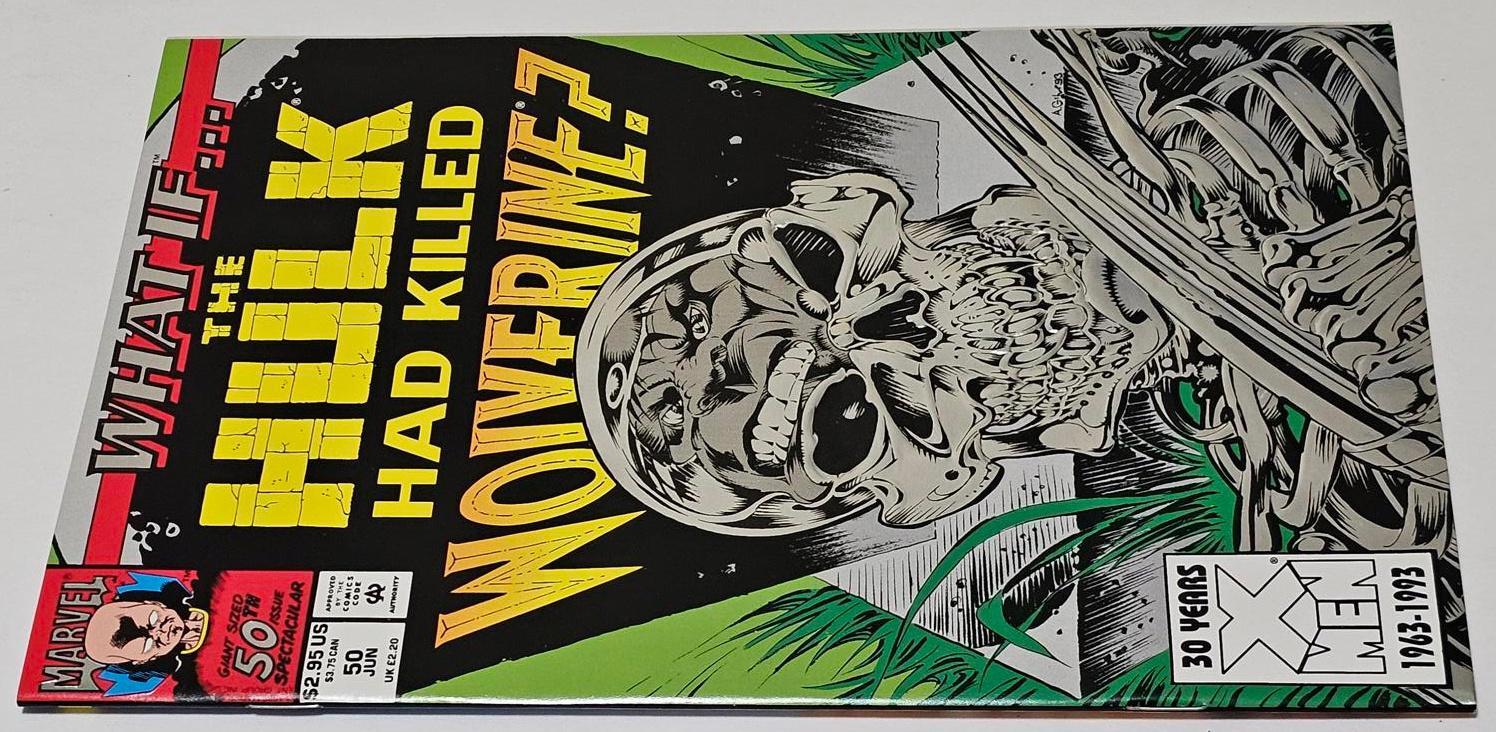 What If 50 What If The Hulk Had Killed Wolverine? 1993 Marvel Embossed Cover This special issue has a cardstock cover that is both embossed, and foil enhanced, giving it a 3D effect. Excellent condition. Check out the photos for condition details.