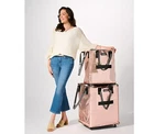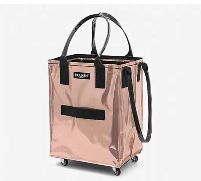 Places to go, things to do, stuff to schlep... take along the Hulken rolling tote bag to help with the heavy work. Made to effortlessly move items from point A to point B (and even point C), this lightweight wheeled wonder carries groceries, hobby gear, get-away garb, and whatever essentials you want. Grocery shopping? Take this tote! Buying in bulk? Even better -- it'll all fit in this convenient carryall that folds up for easy storage when not in use. Traveling? Enjoy the journey. Just pack what you plan to take, zip it up, and then zip to and from the airport, hotel, and transportation. It's "haul" about the possibilities with Hulken. For less lifting and lugging, let this handy bag lighten your load. From Hulken. Zipper closure, three handles, built-in cover, four spinner wheels Folds flat for storage Water resistant Button-tab closure helps keep bag flat and secure when not in use Measurements: Open 16" x 12" x 22"; Folded 16" x 4" x 20"; weighs 3 lbs; 66-lb weight capacity 60% polypropylene/24% metal/7% PVC/5% polyester/4% polyethylene Imported