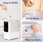 From the manufacturer Previous page Next page Smart Control: Control settings, create schedules, and view real-time humidity levels through the free VeSync app. Seamlessly manage your humidifier from anywhere. Warm & Cool Mist: Choose between warm or cool mist settings to suit your environment, providing comfort year-round. Auto Mode: Set your preferred humidity level in the VeSync app and let Auto Mode maintain it for you. Aromatherapy: Add essential oils to the aroma pad to create a soothing, fragrant atmosphere in your space. Ultra-Quiet: Noise reduction technology keeps the sound level as low as 26dB—whisper-quiet operation for peaceful sleep or work. Dual 360° Nozzles: Customize mist output with two rotating nozzles, directing mist in different directions for complete room coverage. Top-Fill Design: Refill the tank easily by pouring water directly into the top—no need to flip anything over! Wide Coverage: Quickly humidify rooms sized between 215–430 ft² with efficient mist output for optimal comfort. Health Benefits: Maintains optimal humidity to help hydrate skin, relieve congestion, and reduce nightly coughing. What’s Included: 1 × Smart Humidifier 1 × Cleaning Brush 3 × Aroma Pads (1 pre-installed) 3 × Absorption Pads (1 pre-installed) 2 × Water Filter Sponges (1 pre-installed) 1 × User Manual 1 × Quick Start Guide Perfect for Your Space: Turn your room into a tropical haven, meditation space, or home spa with soothing mist and aromatherapy. Smart Control Features: Control settings, monitor humidity levels, set schedules and timers, and adjust mist output easily through the app. Why Choose This Humidifier: Enhance your comfort with versatile features, ultra-quiet operation, and customizable mist settings to suit your needs. Note: Please remember to use genuine LEVOIT accessories to ensure optimal performance and avoid potential issues with non-official parts. On Nov 19, 2025 at 20:31:22 PST, seller added the following information: