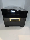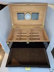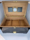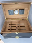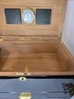 This limited edition cigar humidor box from Humidore Supreme is the perfect addition to any cigar collection. It comes with a hygrometer and accessories to ensure that your cigars stay fresh and flavorful. The box is designed with a contemporary style and is perfect for storing your favorite cigars. The brand, Humidore Supreme, is known for its high-quality cigar accessories and this humidor box is no exception. It is made with durable materials and is designed to last for years to come. If you're looking for a stylish and functional way to store your cigars, this humidor box is the perfect choice. Comes with a key. Used as is. Buyer pays all shipping costs.