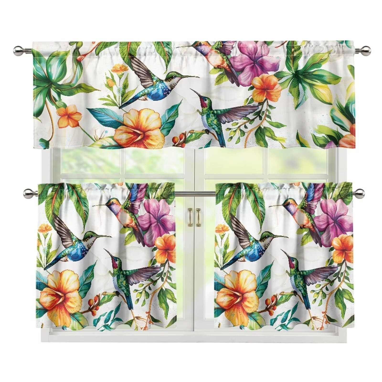 【Various Design】We have a variety of patterns for you to choose from, such as floral,butterfly, cow print, tie dye print, leopard, galaxy, horse, ethnic style, sunflower and so on. Package: 1 panel valance & 2 panel tier curtains per package. Material:Made of high quality polyester fabric, which is durable and lightweight,panel can protect your privacy, while helping to reduce noise,filter strong sunlight to eyes,and giving your home a new look. 3 Pieces Set Size: 1 piece of curtain valance 53.9" x 17.7" and 2 tiers size option: 27.5" x 24"/27.5'' x 35.8''. Multiple Uses:Different patterns curtains will decorate your windows and rooms with new great effect, suits for contemporary, traditional, vintage rustic home styles. Suitable for kitchen, living room, bedroom, children's room, study room, etc. Also a great gift option. Easy Care: Machine washable for easy care and maintenance, use only non-chlorine bleach when needed, tumble dry low and warm iron as needed.