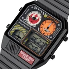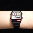 Display: Digital Band/Strap: Bracelet Department: Men, Unisex Adults Water Resistance: 3 m (0.3 ATM) Caseback: Snap Brand: Humpbuck Watch Shape: Square Case Thickness: 10 mm Case Size: 33 mm Case Colour: Black Strap Colour: Black Style: Pilot/Aviator Features: Alarm, Day Indicator, LED Display, Multifunction, Water-Resistant Type: Wristwatch Strap Material: Stainless Steel