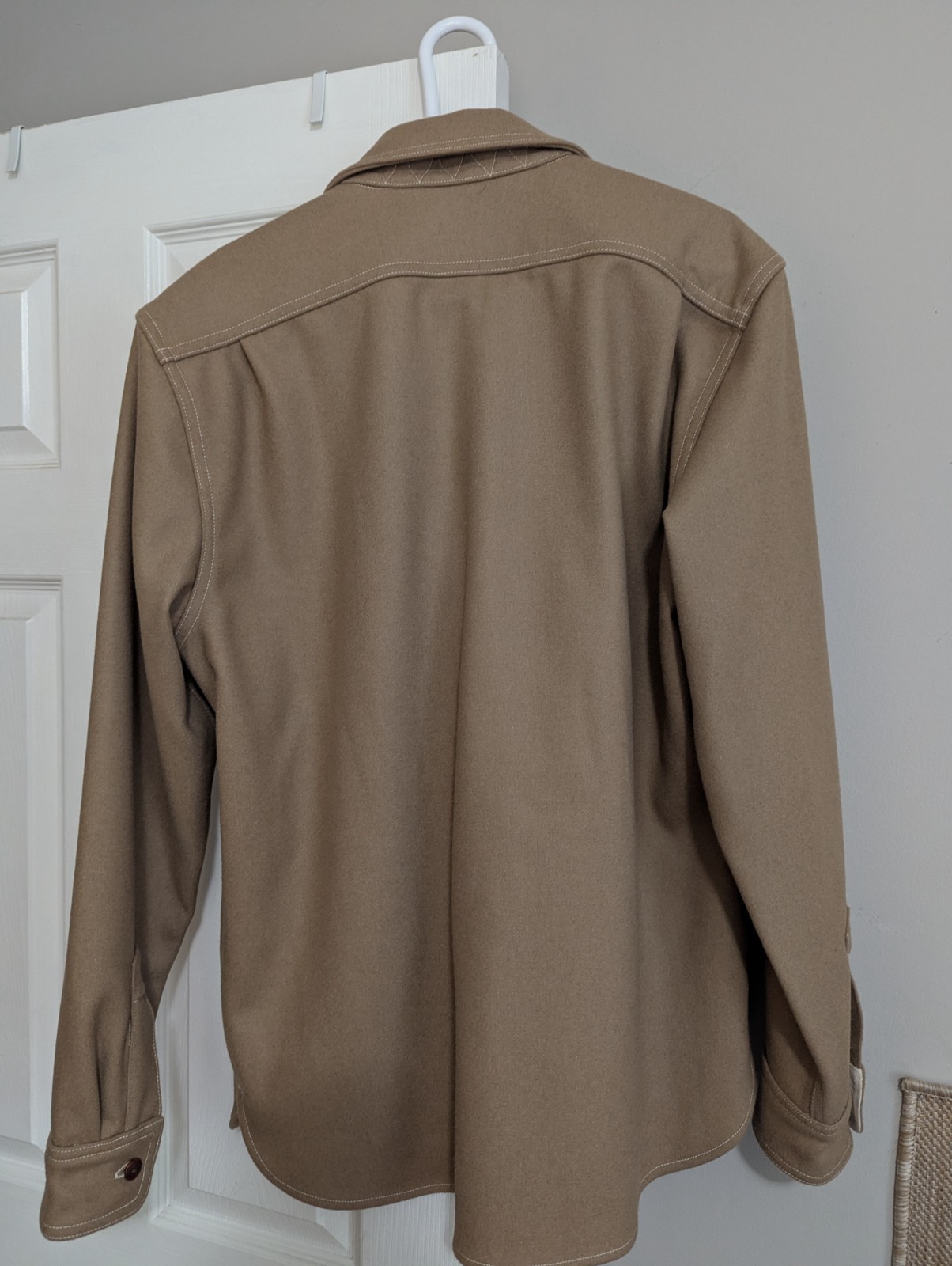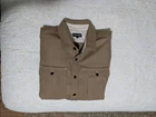 Up for your consideration is a gently worn overshirt from the brand A New Medium. This is sold by Iron Shop Provisions and lists for $440. The size is an XL Mens and has been worn a few times. This overshirt is almost always sold out (as it is currently) and when it does become available they sell out quickly due to limited quantities. Please visit Iron Shop Provisions website for additional information. If you go on YouTube and search for ' Iron Shop Provisions Huntsman' the owner and the designer do a short video on the specifics of this. Here is information straight from their website. Description In the pursuit of the perfect over shirt, The Huntsman was created as our take on this classic piece. Through countless hours searching for the right material, Hainsworth Mills became an obvious choice for their selection of wool fabrics. Made in the UK since the late 18th century, Hainsworth is best known for their use in military uniforms all the way back to the use in the battle of Waterloo. The 15oz pure new wool used on this piece is traditionally reserved for naval pea coats for its durability as well as being wind and naturally water resistant. Coupled with natural corozo buttons and Japanese HBT lining, the Huntsman is a piece designed to be versatile yet robust enough for any setting. Hainsworth Mills 15oz 100% pure new wool Custom corozo nut buttons Japanese HBT lining Flat felled chainstitch construction Cigarette pocket on left hand chest pocket Reinforced pocket flaps Reinforce collar stitching Custom labels made in the USA