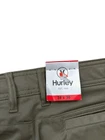 The NEW Hurley Pants in men's size 34x30 are a stylish and versatile addition to any wardrobe. These light green pants feature a side zip pocket for added functionality. Made from a comfortable blend of polyester and spandex, they offer stretch and moisture-wicking properties, making them perfect for any season. With a mid-rise and flat front design, they have a modern and city-inspired look that is both trendy and timeless. The pure solid color and straight leg style give them a classic and clean appearance, while the woven fabric ensures durability. Ideal for travel or casual wear, these pants from the Hurley brand are a must-have for the fashion-conscious man.