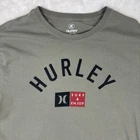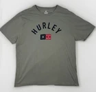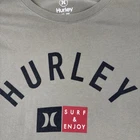 This is a Hurley Surf & Enjoy T-shirt in size XL for men. It features a graphic print with a Hurley Surf character theme, made of cotton knit fabric in a beige color. The shirt has short sleeves, a crew neck, and is machine washable. It is part of the Hurley Surf And Enjoy product line, perfect for those who enjoy surfing, beach, and skateboarding.