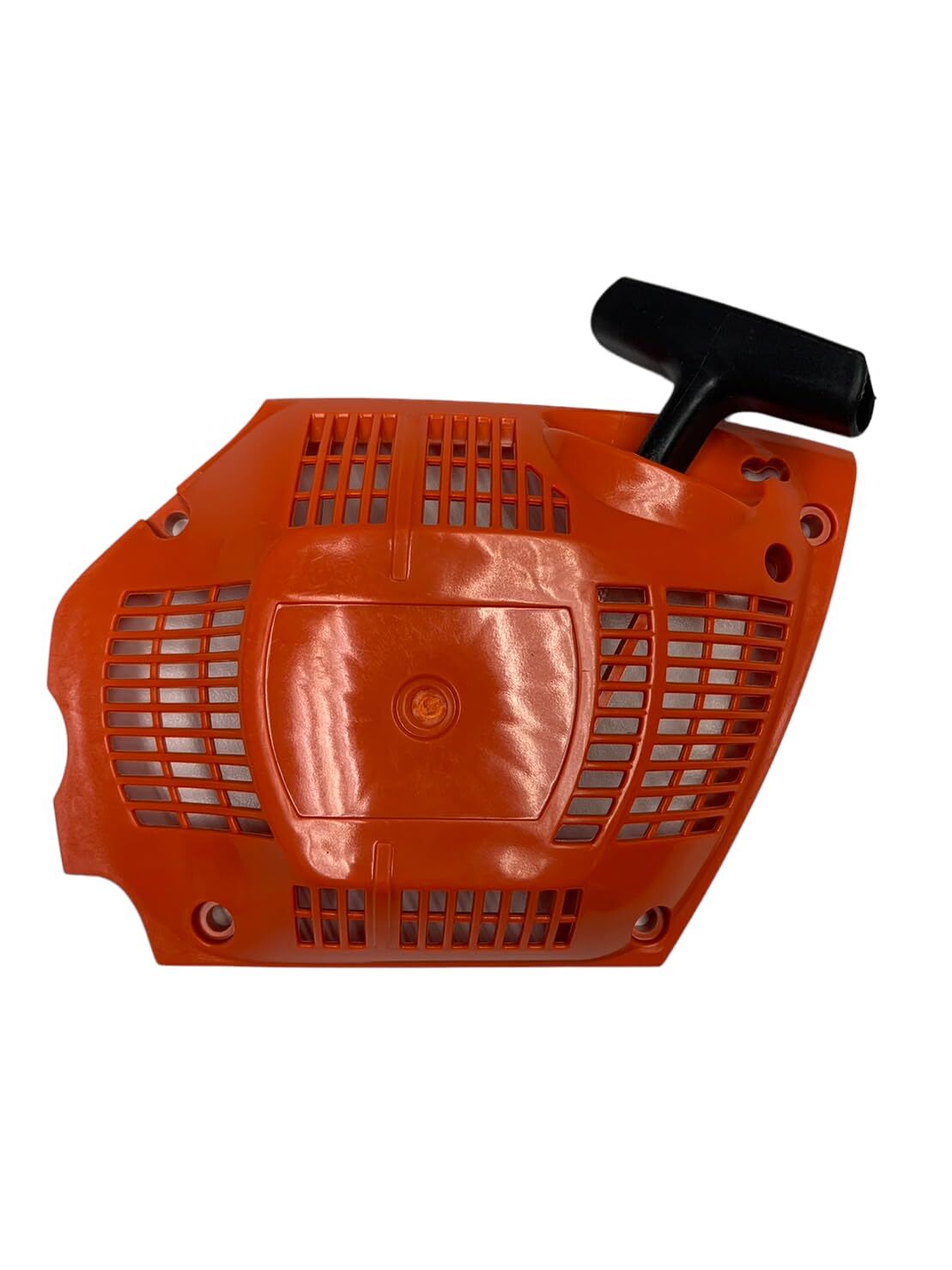Recoil starter pull start assembly, starter cover assembly compatible with Husqvarna 455E Rancher II, 455 Rancher II chainsaws, serving as a replacement part. This assembly replaces OEM number 574 64 32-01 and 574643201. Recoil Starter Pull Start Assembly Starter Cover Assy compatible with Husqvarna 455E 455 E Rancher II, 455 Rancher II Chainsaws chain saws replacement parts Replaces OEM 574 64 32-01, 574643201