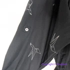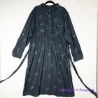 Hutch Anthropologie Womens Shirt Dress Origami Bird Button Front Roll Tab Sleeve Black, size 5X I adore this Hutch Anthropologie Women’s Shirt Dress in size 5X! This stunning black dress features a charming origami bird print and is designed with both elegance and versatility in mind. It has a classic collared neckline and a button-front closure for a polished look. The long sleeves come with a functional button halfway down the arm, allowing you to roll them up into half sleeves for a more casual vibe. A matching belt cinches the waist beautifully, enhancing the dress's flattering silhouette. The addition of side slits offers ease of movement and a touch of modern flair, making it perfect for both day and evening wear. The measurements shown are approximate and are provided as a helpful reference, but not a guarantee of fit. The actual colors may vary due to differences in lighting conditions and computer monitor settings. Excellent condition. No noticeable flaws or stains or damages