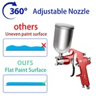 【SPECIFICATIONS】Type of Feed: gravity / Fluid Nozzle:1.5 mm / Air pressure: 3.45 bar (50 PSI) / Air consumption:11 cfm / Paint Capacity:400 CC / Air Inlet:1/4" 【HIGH QUALITY】air compressor spray ’s ergonomic designed handle for comfortable grip. Easy trigger reduce operating fatigue. Simply operate to touch up or painting. 【ADJUSTABLE】Three adjustment valve can flexibility to adjust the liquid volume/ air volume/ spray range to meet your various usage needs, such as car、wall、wood、metal、leather. 【400ML PAINT CUP】400CC detachable gravity feed cup, minimizes waste of paint in the cup and removable for easy cleaning. 【360°ADJUSTABLE NOZZLE】1.5mm stainless steel nozzle, Brass Airflow Cap, nozzle direction can be adjusted 360°by adjusting the nozzle cap, stainless steel material is very durable and can spray most light to medium viscosity materials, used for automotive painting, household appliances, furniture, iron plate, aluminum, plastic, etc.