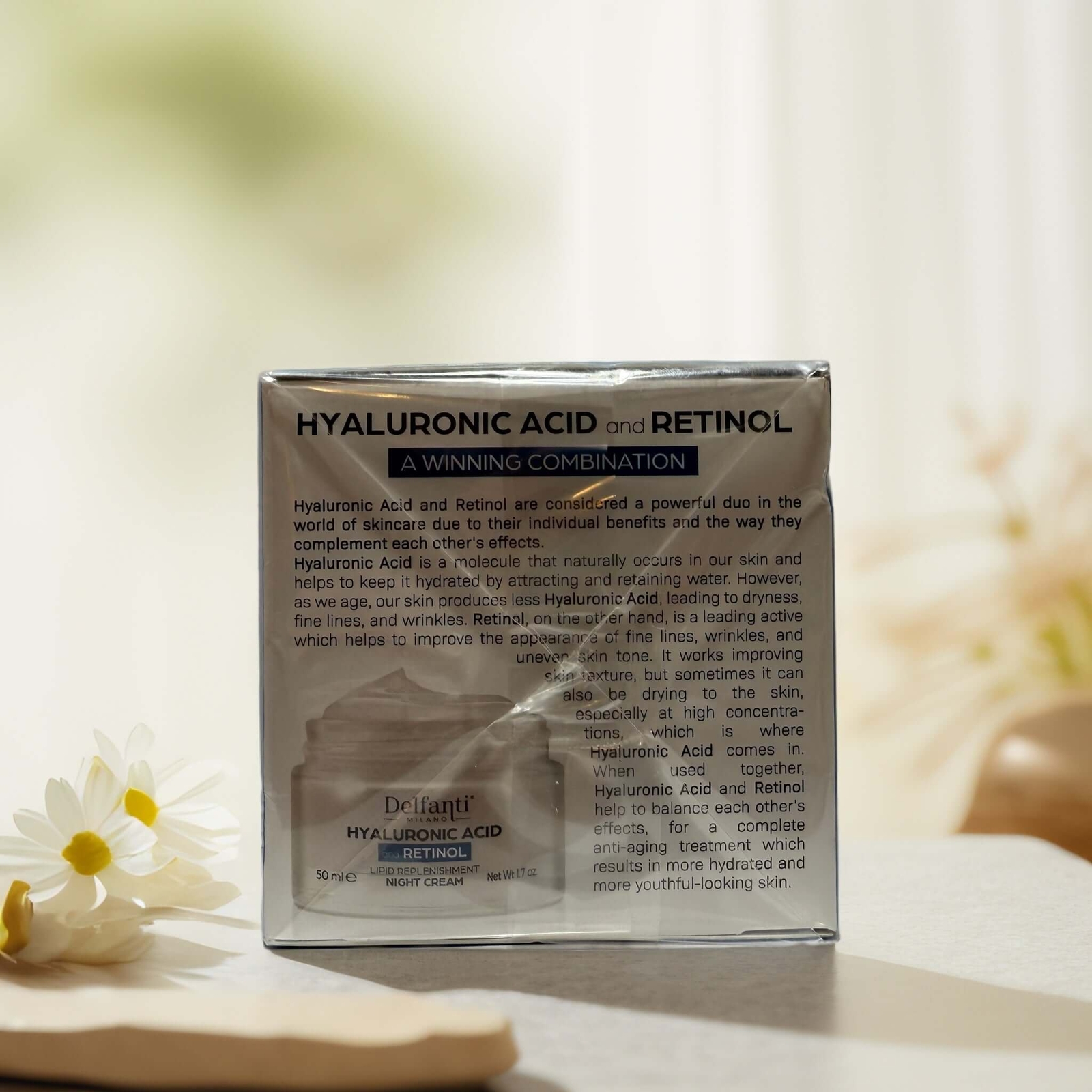 Hydrate & Repair | HA & Retinol Night Cream, by Delfanti Milano - 1.7 fl oz β 100% Positive Feedback: Consistently rated for description accuracy, product quality, shipping and service speed, and the care QCS puts into every single order. π Fast & Free Shipping: Ships in 1-2 business days from our studio in Buffalo, NY Designed for overnight facial rejuvenation, this night cream combines hyaluronic acid for intense hydration with retinol to smooth fine lines and improve skin texture. It absorbs gradually while you sleep, delivering deep nourishment to dry or aging skin on the face and supporting the skin's natural repair cycle without heaviness or irritation. Key Features Hyaluronic acid replenishes moisture and plumps skin Retinol targets wrinkles and improves skin tone Soft cream texture absorbs overnight without residue Formulated for nightly use on the face Made in Italy and dermatologically tested Your skin deserves a good night too β let Regina tuck it in with something nourishing. Brand: Delfanti Milano | UPC: 756677591814 Authenticity Guaranteed: Every item we sell is 100% authentic and sourced directly from verified suppliers, retail, wholesalers, distributors, or brand partners. We never sell expired, counterfeit, or secondhand skincare β only products we trust and would use ourselves. Customer Happiness Matters: Every order is packed by hand and chosen with care β but we're also here to help you create something custom. Looking for skincare advice, a personalized bundle, a gift box, or something from our handmade line? Just ask. We love helping customers build rituals that feel as good as they work. Why Shop Queen City Skincare? Curated by skincare lovers β not bots or bulk resellers Every item packed by hand with care and accuracy Over 400+ authentic products, updated weekly Support from a small, knowledgeable team (Just the 2 of us, and Regina of course!) Click to watch our brand story on YouTube About Queen City Skincare: We curate skincare that works β from K-Beauty favorites to our handmade Essential Moisture collection. Every product is selected for its ingredients, texture, and the joy it brings to your routine. We're not affiliated with the brands we sell (aside from our own handmade line) β but we test, love, and trust everything in our shop. Want help finding something? Send us a message β we're happy to recommend a product or build a custom ritual that fits your skin and your life. Visit our full eBay shop: Queen City Skincare on eBay Please review our policies on our ebay shop page (Shipping, Returns, Data Privacy and others) QCS Policy Page