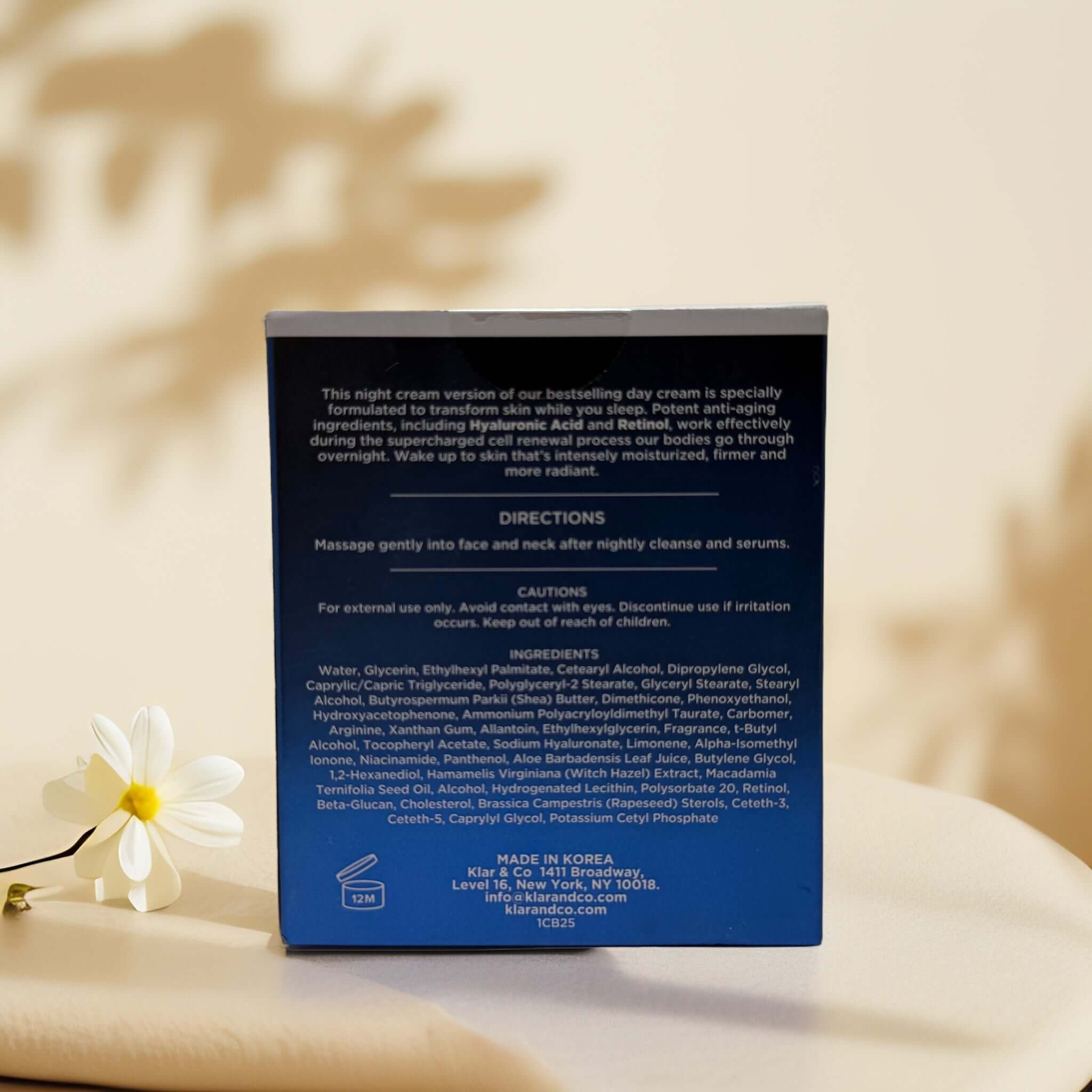 Hydrate & Smooth | Azure Hyaluronic & Retinol Anti-Aging Night Cream - 1.7 fl oz â 100% Positive Feedback: Consistently rated for description accuracy, product quality, shipping and service speed, and the care QCS puts into every single order. ð Fast & Free Shipping: Ships in 1â2 business days from our studio in Buffalo, NY This deeply moisturizing night cream for the face uses the power of hyaluronic acid and retinol to hydrate, firm, and reduce the appearance of fine lines while you sleep. Its lightweight texture melts into the skin, locking in moisture and supporting skin renewal overnight. Crafted with a naturally clean, vegan formula , it's ideal for nightly use to visibly smooth and plump mature or dry skin. Key Features Anti-aging formula with retinol to reduce fine lines and wrinkles Hyaluronic acid delivers intense hydration and helps plump the skin Dermatologist tested and made without parabens, phthalates, or petroleum Vegan , cruelty-free, and made in Korea 1.7 fl oz full-size jar — ideal for daily use as your PM moisturizer Wake up to firmer, smoother skin — Regina approves of beauty sleep that works overtime. Brand: Azure  | UPC: 689513234593 Authenticity Guaranteed: Every item we sell is 100% authentic and sourced directly from verified suppliers, retail, wholesalers, distributors, or brand partners. We never sell expired, counterfeit, or secondhand skincare â only products we trust and would use ourselves. Customer Happiness Matters: Every order is packed by hand and chosen with care â but weâre also here to help you create something custom. Looking for skincare advice, a personalized bundle, a gift box, or something from our handmade line? Just ask. We love helping customers build rituals that feel as good as they work. Why Shop Queen City Skincare? Curated by skincare lovers â not bots or bulk resellers Every item packed by hand with care and accuracy Over 400+ authentic products, updated weekly Support from a small, knowledgeable team (Just the 2 of us, and Regina of course!) Click to watch our brand story on YouTube About Queen City Skincare: We curate skincare that works â from K-Beauty favorites to our handmade Essential Moisture collection. Every product is selected for its ingredients, texture, and the joy it brings to your routine. We're not affiliated with the brands we sell (aside from our own handmade line) â but we test, love, and trust everything in our shop. Want help finding something? Send us a message â weâre happy to recommend a product or build a custom ritual that fits your skin and your life. Visit our full eBay shop: Queen City Skincare on eBay Please review our policies on our ebay shop page (Shipping, Returns, Data Privacy and others) QCS Policy Page