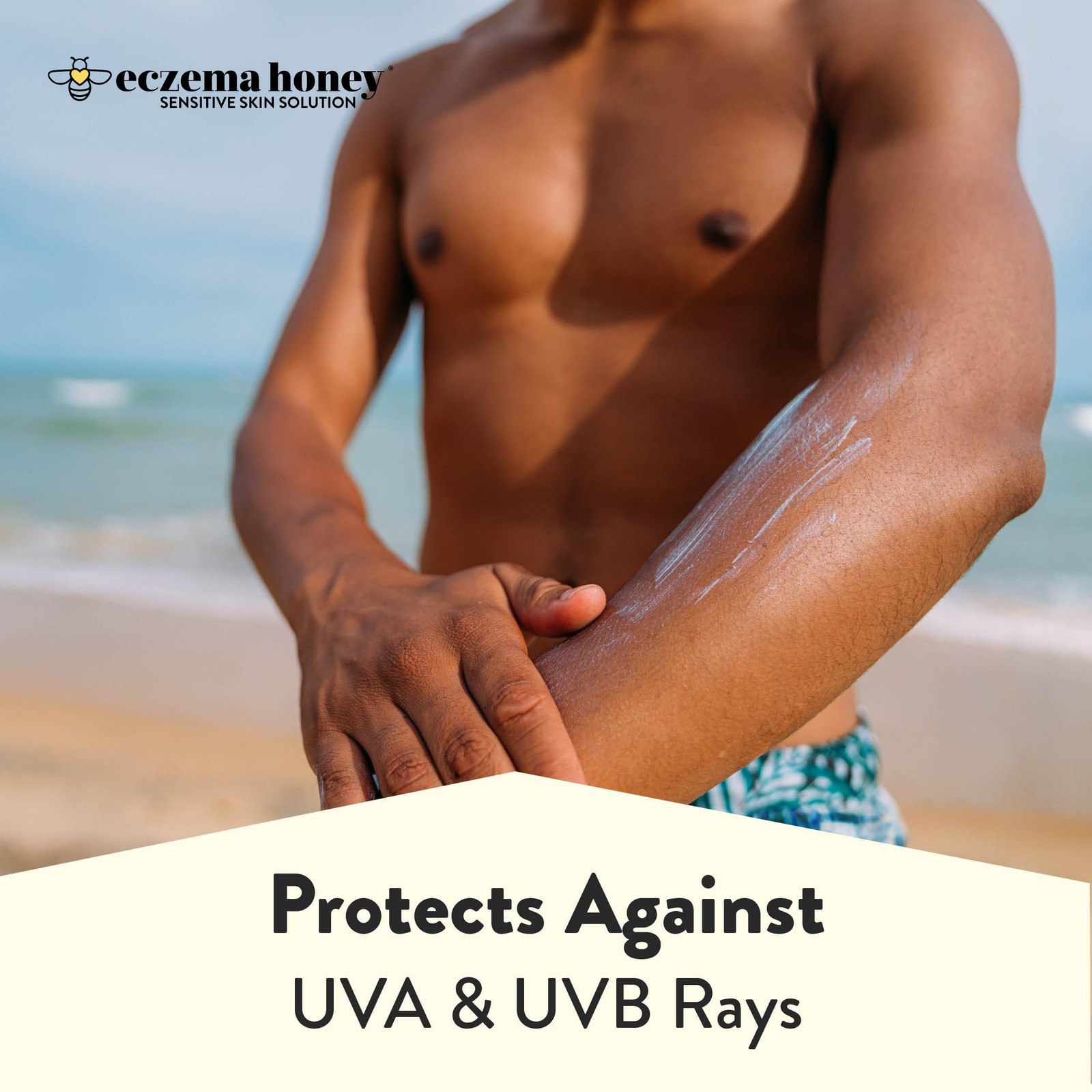 Discover the ultimate protection for sensitive skin with Eczema Honey Hydrating Mineral Sunscreen. This SPF 30, crafted with coconut fatty acids, aloe extract, honey, and oat extract, offers broad-spectrum protection against UVA/UVB rays. Lightweight and non-greasy, our sunscreen is perfect for everyday use on the face and body, soothing sunburn damage and maximizing moisture absorption while enhancing your skin's texture and radiance. Suitable for all ages and skin types, specially formulated for sensitive skin and people with eczema, it improves skin texture and boosts radiance. Eczema Honey Sunscreen is infused with natural ingredients and provides soothing and hydrating power without harmful chemicals. Embrace the confidence of healthy, protected skin with Eczema Honey Sunscreen SPF 30 – your everyday essential for sun care. Gentle Sun Skin Care – Eczema Honey's Broad spectrum SPF 30 Hydrating Mineral Sunscreen provides soothing sun protection for people with eczema and sensitive skin Maximized Moisture Absorption – Our non-tinted facial sunscreen made with coconut fatty acids and aloe extract soothes sunburn damage while protecting the skin barrier and improving texture Lightweight Protection – Eczema Honey's non greasy sunscreen, perfect for both face and body, is enriched with honey and oat extract to gently soothe sunburn, enhance moisture absorption, and strengthen the skin barrier Enhances Skin Glow – Our natural sunscreen contains blue-green algae and microalgae spirulina extracts to safeguard the skin and enhance its natural glow, promoting radiant skin Nourish and Shield – Our gentle mineral sunscreen, designed for both face and body, hydrates all skin types, even sensitive skin, offering soothing sun protection for everyone