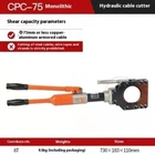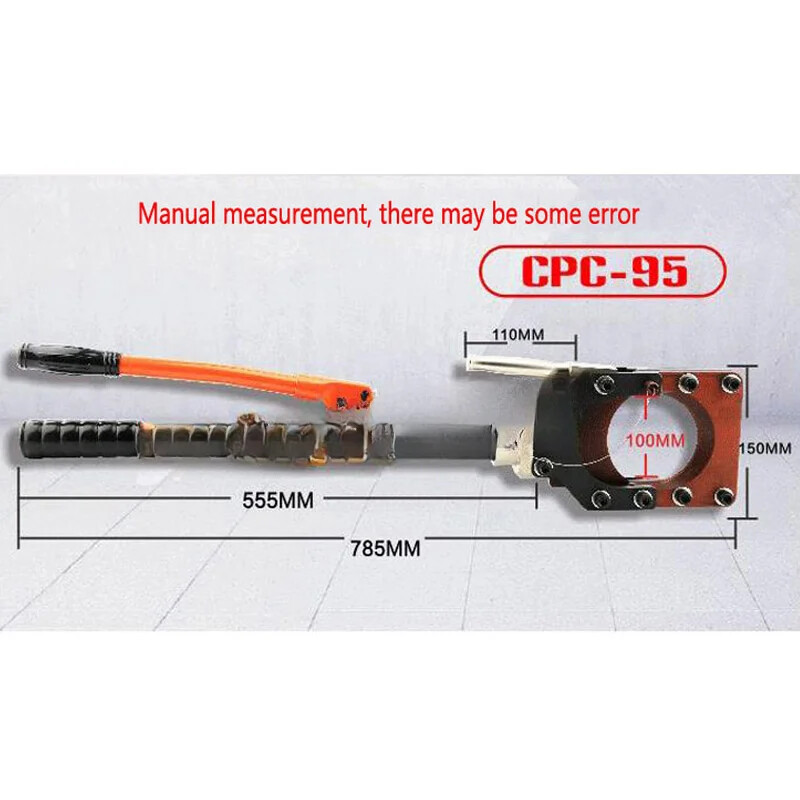 Hydraulic Cable Cutter Hydraulic Crimping Tool CPC-95 Overall Cable Scissors Fast Copper Armored Cable Clamp Bolt Cutter Model: CPC-95 Output: 10T Shear range: copper armored cable below Φ95mm Hydraulic Cable Cutter Hydraulic Crimping Tool CPC-95 Overall Cable Scissors Fast Weight about: 10k Size about:785*150mm