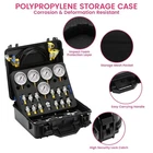 Hydraulic Pressure Test Kit 5 Gauge 13 Coupling 14 Tee Connectors For Excavator 🔧 Hydraulic Pressure Test Kit (Model TKS-4) – 5 Gauges, 13 Couplings, 5 Hoses | For Excavators & Industrial Machinery 🔧 【0–10,000 PSI Range | 304 Stainless Steel Gauges | Portable Storage Case】Compatible with Caterpillar/Komatsu/John Deere + More 1. Core Features 🔹 5 Precision Gauges – Covers 0–10,000 PSI (0–600 Bar) Equipped with 5 dual-scale (PSI/Bar) gauges to measure hydraulic pressure across nearly all industrial and construction equipment needs—eliminates the need for multiple single-range tools: Gauge Range (PSI/Bar) Typical Applications 0–150 PSI (0–10 Bar) Low-pressure systems (e.g., hydraulic cylinder retraction, small pneumatic accessories) 0–1,500 PSI (0–100 Bar) Medium-pressure components (e.g., excavator arm lift, loader bucket tilt) 0–4,000 PSI (0–250 Bar) High-pressure pumps (e.g., main hydraulic pumps on 10–20 ton excavators) 0–6,000 PSI (0–400 Bar) Heavy-duty systems (e.g., bulldozer blade lift, crane winch hydraulics) 0–10,000 PSI (0–600 Bar) Ultra-high-pressure equipment (e.g., large mining excavators, hydraulic breakers) Non-Yellowing Clear Dials : High-visibility screens ensure easy reading in bright sunlight or dim engine bays—no need for unit conversions (PSI and Bar displayed side-by-side). Glycerin-Filled Design : Reduces vibration and pulsation interference (common in hydraulic systems), delivering accurate readings (±1.5% full-scale error) even during equipment operation. 🔧 Durable Construction – 304 Stainless Steel & Aramid Fiber Hoses Built to withstand the harsh conditions of construction, mining, and shipping environments (dust, moisture, extreme temperatures): Gauge Casings : 304 stainless steel resists rust, corrosion, and impact damage—far more durable than plastic gauges that crack under heavy use. Copper threaded joints ensure leak-free connections to hoses/couplings. Test Hoses : 5.2 ft (1.6 m) long, made of nylon + aramid fiber + polyurethane. Aramid fiber (used in bulletproof vests) reinforces the hose to handle up to 10,000 PSI without bursting. The length allows safe operation from a distance (avoids contact with moving machinery). Couplings/Tees : Precision-machined metal with protective plastic films (prevents thread damage during storage). Compatible with both metric and imperial threads (see “Fitment” section for full specs). 🌟 Universal Compatibility – Fits 90%+ Industrial Machinery Brands Designed to work with nearly all major excavator, loader, and construction equipment brands—no brand-specific adapters needed: Equipment Brand Compatible Models (Examples) American Caterpillar (CAT 320, 330), John Deere (350G, 470G), Case (CX210, CX350) Japanese Komatsu (PC200, PC360), Hitachi (ZX200, ZX350), Kobelco (SK210, SK350) Korean Hyundai (R210, R350), Doosan (DX225, DX380), Daewoo (SOLAR 220LC) European Volvo (EC220, EC350), Hiab (crane trucks), Liebherr (R920, R930) Chinese Sany (SY215, SY365), XCMG (XE215C, XE370D), Liugong (CLG920E, CLG936E) 13 Test Couplings : Covers all common thread types: ZG1/4, G1/4, G1/8, G3/8, UNF7/16, UNF9/16, M10×1.25, M14×1.5, M10×1, M16×1.5, M12×1.5, NPT1/4, and a Carter quick connector for fast attachment to American-style hydraulic ports. 14 Tee Connectors : Allow tapping into existing hydraulic lines without disconnecting components—saves time and prevents fluid loss. 🔩 Portable Storage Case – Organized & Protected Comes in a heavy-duty ABS plastic case with custom foam inserts to keep all components secure and organized: Foam Protective Layer : Each gauge, hose, and coupling has a dedicated slot—prevents scratches, tangles, or loss during transport. Built-In Handle & Locks : Easy to carry to job sites (weighs 14.9 lbs / 6.75 kg) and keeps components dry/dust-free. Desiccants Included : 2 moisture-absorbing packets prevent rust on metal parts (critical for storage in humid environments like construction yards). 2. Technical Specifications Parameter Category Detailed Specifications Condition 100% Brand New Product Model TKS-4 Hydraulic Pressure Test Kit Gauge Quantity & Ranges 5 gauges: 0–150 PSI (10 Bar), 0–1,500 PSI (100 Bar), 0–4,000 PSI (250 Bar), 0–6,000 PSI (400 Bar), 0–10,000 PSI (600 Bar) Gauge Material Casing: 304 stainless steel; Joints: Copper; Filling: High-grade glycerin Hose Specifications 5 hoses (5.2 ft / 1.6 m each); Material: Nylon + Aramid fiber + Polyurethane; Max Pressure: 10,000 PSI Couplings/Tees 13 couplings (metric/imperial threads); 14 tee connectors Storage Case ABS plastic with foam inserts; Dimensions: 12.8" × 12.0" × 4.5" (325×305×115 mm) Net Weight 14.9 lbs (6.75 kg) Warranty 90-Day Manufacturer Warranty Shipping Origin CA or NJ warehouses (fast delivery to continental U.S.) 3. Package Included 5 × Hydraulic Pressure Gauges (with thread protection covers) 5 × 5.2 ft (1.6 m) High-Pressure Test Hoses 13 × Test Couplings (ZG1/4, G1/4, G1/8, G3/8, UNF7/16, UNF9/16, M10×1.25, M14×1.5, M10×1, M16×1.5, M12×1.5, NPT1/4, Carter Quick Connector) 14 × Tee Connectors 2 × Moisture-Absorbing Desiccants 1 × Instruction Manual (with setup diagrams) 1 × Heavy-Duty Portable Storage Case (As shown in product images) 4. Usage & After-Sales Tips Usage Guidelines Pre-Test Prep : Select the gauge with a range 20–30% higher than the expected system pressure (avoids gauge damage from overpressure). Attach the appropriate coupling to the gauge and hose, then connect to the hydraulic system’s test port (use Teflon tape on threaded joints for extra leak protection). Bleed air from the hose by opening the system valve slightly—air bubbles cause inaccurate readings. Safety First : Wear gloves and safety glasses—hydraulic fluid under high pressure can penetrate skin. Keep body parts away from hose connections during testing. After-Sales Support Fitment Issues : If a coupling doesn’t match your equipment’s test port, co
