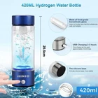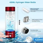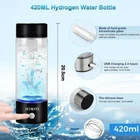 Portable Hydrogen Rich Generator Water Cup Alkaline Ionizer Maker Bottle Features: 1. Improve cellular health and enhance better nutrient absorption in the body,Improvement of blood glucose & HbA1c levels in diabetes . 2. Made of high borosilicate glass, high quality and safe to use. 3. It only takes 3 minutes to produce a cup of hydrogen rich water which can be drunk directly. 4. Better hydration for your body- increase blood circulation,Help to lower saturated fat levels 5. Reduce aging to give healthy looking skin 6. Improve memory in aged individuals - reduce constipation problems How to use it ? Step 1. Install drinking water, first charge mineral water. (The lid of the water cup needs to be opened when producing hydrogen.) Step 2. Just press once, the blue light will light up, 3 minutes hydrogen will be generated and the system will shut down automatically. Step 3. Press for three seconds to turn off the device automatically. All lights are off and the machine is off. When there is no power, the water cup will flash red, the light will be red when charging and the light will turn green when fully charged (partially blue). Step 4. Turn the glass counter-clockwise after the scale on the electrolyte film is generated. After cleaning, turn it clockwise to tighten the glass. Specifications: Product category: Handy Cup Style: Modern and minimalist Imported or not: No Function: Healthcare Structure: Single layer, double layer Article number: RA-01 Pattern: Solid color Shape: cylindrical Weight: About 0.5kg Applicable audience: general Trade attribute: domestic trade Capacity: About 420ML Material: High borosilicate Style: Hydrogen rich water cup Packing list: 1 * Hydrogen water bottle 1 * USB Charging, Adapter 1 * Manual