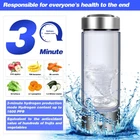 About this item Improve Water Quality in 3 Minutes : Using advanced SPE and PEM technology, 3 minutes of rapid electrolysis improves water quality. A single use can produce a high concentration of 1600 ppb hydrogen, turning ordinary drinking water into alkaline water rich in hydrogen ions. Suitable for all drinking water quality. Provide you with high quality water source. Food Grade Material : Made of food-grade borosilicate glass, it is sturdy and durable and does not contain any harmful substances. The lid of portable hydrogen water generator has a closed design and a thick sealing ring, which provides strong sealing and maintains the concentration of hydrogen. Don't let leaks become your worry. (❗❗ Please note that the hydrogen water cup should be placed upright when using it. If it is placed sideways or upside down, the water cup will leak due to pressure.) Easy to Use and Clean : After pouring 80% of the water into the hydrogen water cup. Just press lightly, the blue light on the bottom lights up and the hydrogen gas decomposes from the water. Equipped with a unique design, both the bottom and top can be easily unscrewed for easy cleaning, hydrogen water maker provide you with the best hydrogen-rich water experience. Simple Stylish Design : The bottom of hydrogen water maker bottle is equipped with a soft EVE pad, which is stable and non-slip. USB design allows you to make hydrogen-rich water anytime and anywhere, suitable for office, exercise, travel and other occasions. Large capacity of 420ml meets your health needs. Healthy Gift Options : Long-term drinking of hydrogen-rich water can promote metabolism, relieve muscle soreness, improve sleep, and provide health protection for your relatives and friends. We provide exquisite gift box packaging and high-quality after-sales service.This hydrogen water machine is a perfect gift choice! Product Description Hydrogen Water Bottle Wide Range of Usage Scenarios Food Grade Material
