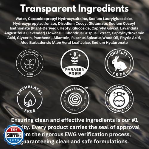HygieneLab Mens Natural Body Wash - Ultra Hydrating, EWG Verified Clean Formula, Lavender Sands Scent, Sulfate-Free, Paraben-Free, Phthalates-Free, Gentle and Effective for Healthy Skin (10 oz) Features VERIFIED CLEAN BY EWG: With thousands of consumer products on the market, it can be overwhelming to know which ones are safe and healthy. The Environmental Working Group (EWG) Verified mark does the work for you. When you see the EWG Verified mark on a product, you can be sure it's free from EWG chemicals of concern and meets their strict standards for your health. FREE FROM HARMFUL CHEMICALS: Our body wash is paraben-free, sulfate-free, phthalate-free, and fragrance-free. Enjoy peace of mind knowing that your skin is being cleansed without exposure to harsh or synthetic additives. NOURISHING AND HYDRATING FORMULA: Enriched with Aloe Vera Leaf Juice and Sodium Hyaluronate, our body wash deeply hydrates and soothes your skin, leaving it feeling soft and refreshed after every use. NATURAL AROMAS: Infused with the natural essence of Lavender Oil and Sandalwood Oil, this body wash offers a relaxing, spa-like experience, helping to calm your senses and rejuvenate your skin. FULL TRANSPARENCY & MADE IN CALIFORNIA: Our commitment to clean, effective ingredients ensures you can trust what you are putting on your body with 100% ingredient transparency. Shipping Free & Fast Shipping: We offer free shipping to most of the USA with a normal delivery time of 3-7 days. However, due to the current situation, additional delivery time (up to 3 weeks) may be required for some items. Alternative Carriers: We may use alternative carriers (e.g., USPS, FedEx, UPS) to ensure your package arrives safely and on time. Due to the use of multiple carriers, we are unable to provide a tracking number automatically. Handling Time: Orders are processed and shipped within 1-2 business days of receiving cleared payment. Shipping Restrictions: Shipping to Alaska, Hawaii, Puerto Rico, Guam, and other US territories may incur shipping charges or delivery restrictions. Please contact us before ordering, or your order can be refunded/cancelled. State Restrictions: Certain items may not be shipped to California due to state regulations. Contact for Tracking Updates: If you require tracking updates or have any concerns about the delivery of your order, please feel free to contact us, and we will be happy to assist you. Return Policy 30-Day Hassle-Free Returns: If you are not completely satisfied with your purchase, you can return the item for free within 30 days of receiving it for a full refund or exchange. Easy Return Process: Contact us, and we will provide you with a prepaid return shipping label and detailed instructions. No Restocking Fee: There are no restocking fees for returns. However, the buyer is responsible for return shipping costs if the return is not due to a seller's error. Refund Processing: Refunds will be processed within 1 business day of receiving the returned item in its original condition. Feedback Your feedback is extremely important to us. We strive to provide the best products and customer service possible. If you are satisfied with your purchase, please take a moment to leave us a positive review. If you have any concerns or issues with your order, please contact us before leaving negative feedback. We are committed to resolving any problems and ensuring your satisfaction. Contact Us If you have any questions or concerns, please feel free to reach out to our customer support team. You can contact us through the eBay messaging system. We are available Monday to Friday, 9:00 am to 5:00 pm EST, and we will do our best to respond to your inquiry within 24 hours. Thank you for supporting our small family business!