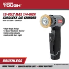 Elevate your DIY projects with the Hyper Tough 12V Max Brushless 1/4-inch Cordless Die Grinder, an essential tool for precision grinding. It boasts a compact design, making it ideal for intricate work in tight spaces, and features a powerful brushless motor that delivers consistent performance. The built-in LED enhances visibility for detailed grinding tasks, and the tool's ergonomic build ensures comfort during extended use. The grinder comes equipped with a 4-inch disc diameter, perfect for a variety of applications, and operates on a 12V battery, offering cordless convenience. The included battery and charger ensure you're ready to tackle any job right out of the box. With an assembled product weight of just 1.46 lb, this Hyper Tough Die Grinder is a versatile addition to your toolkit.