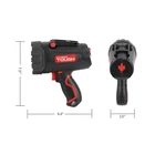 This Hyper Tough 300-Lumen rechargeable LED Spotlight (model 9930) features an ultra-bright LED, a powerful and long-lasting indoor/outdoor spotlight. Whether at home, in a vehicle, camping, or during a roadside emergency or power failure. This spotlight will allow you to illuminate even the darkest of work areas. Durable housing with rubber cover stands 1-meter impact resistance. A rugged pistol-grip handle offers the user a comfortable grip. While the locking pivoting stand and convenient trigger lock provide hands-free operation. The Powerful LED provides a runtime of up to 3 hours. A USB charging cord is included to recharge the spotlight at home or inside a vehicle. Multifunctional, high lumen, easy to carry, hook design. Hyper Tough 300-Lumen LED Spotlight, Automotive Use, Black, Red Tested and rated to ANSI/FL1 standards ETL certificated Clear and consistent brightness capable of illuminating a defined area up to 280 meters (918 feet) 300 Lumen/3 hours run time Fully charging time: 3-5 hours Locking pivoting stand leaves your hands free to work 40-Inch charging cord with USB plug included Color Temperature: 6000K±500K Voltage:4.5V Power: 1.8 watt