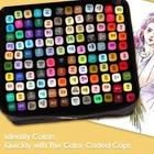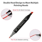 Dual Tip Design Markers: This 120 Colors markers adopted a double-tip design, Broad tip is perfect for quick coverage, fine tip is great for precise details, highlighting, and underlining. Allowing you to write in both thin and thick lines, providing great versatility. Great for use as art markers, sketch markers, permanent markers, alcohol based markers High Quality Alcohol Markers: High quality permanent markers ink, safe, non-toxic, colors to be laid down clean, smooth and evenly, that resists smudging, fading, and doesn’t smudge. This alcohol markers will last through many art projects with high ink volume, also the great cap design that prevents markers from drying out 120 Vibrant Colors: This professional superior artist quality double-ended permanent art markers. Includes all the primary and secondary color shade tones artists need for drawing, sketching,writing, illustrating, shading. Perfect for using on paper, ceramics, glass, wood, cloth and more Color-Coded Caps: The color-coded caps allow for easing in organization and to identify colors quickly. With its ergonomic square-type pen shape, smooth rounded body and comfortable grip, you can use the marker pens for a long time without feeling tired Portable and orderly: Comes with a zipper carrying bag for storing, Make it easy and convenient to portable carry for traveling or outdoor work. and also comes with extra pen holder for neatly arrange the markers
