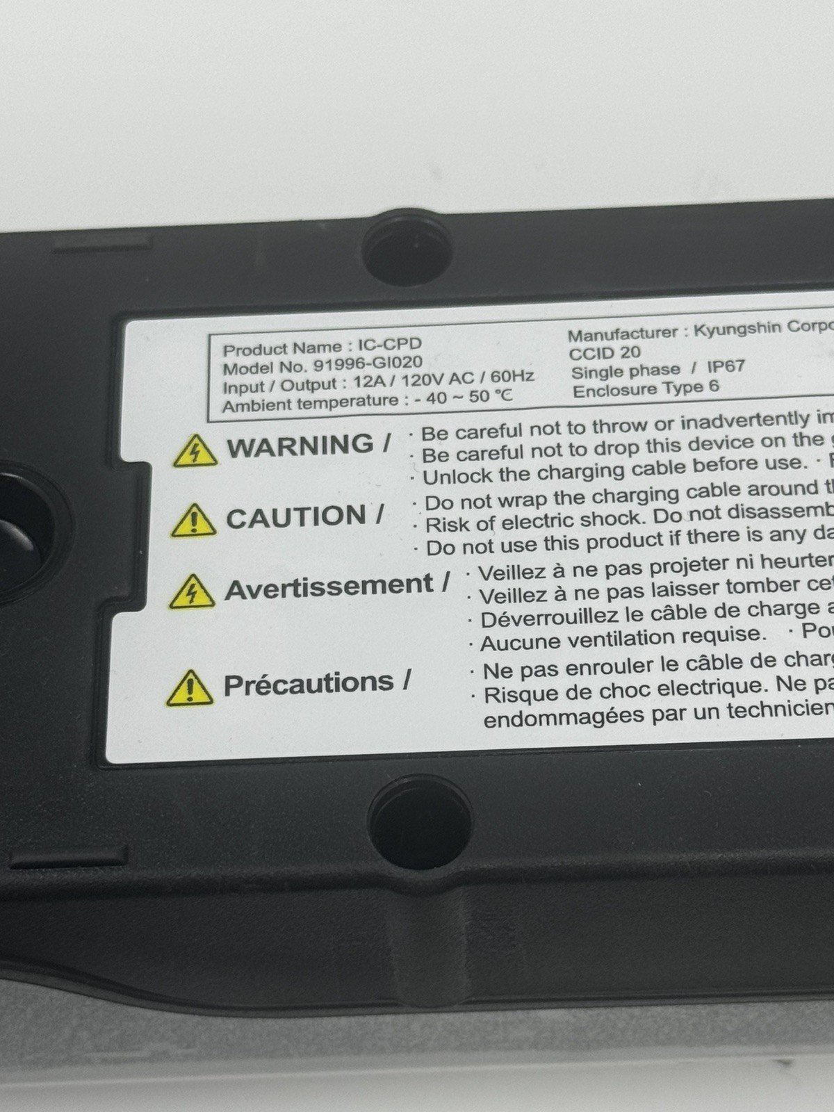 This is a genuine Hyundai / Kia OEM EV charger, designed for use with multiple Hyundai and Kia electric vehicle models. Perfect as a replacement, spare, or travel charger. ✅ Condition: Brand new, never used ✅ Part Number: 91996-GI020 NE ✅ Authentic OEM: Direct from Hyundai / Kia — not aftermarket ✅ Compatibility: Hyundai Ioniq 5 Kia EV6 Hyundai Kona EV Kia Niro EV (Please confirm part number with your vehicle before purchase.) ✅ Reliable Charging: Built to Hyundai and Kia factory standards for safe and efficient charging ✅ Portable Design: Ideal for home use or on-the-go charging Why Buy OEM? Guaranteed compatibility with listed Hyundai & Kia EV models Safer and longer-lasting than aftermarket chargers Backed by manufacturer-grade engineering and quality Fast shipping – carefully packaged. Item Specifics (for eBay): Brand: Hyundai / Kia (OEM) Manufacturer Part Number: 91996-GI020 NE Type: EV Charger / Charging Cable Compatible Models: Hyundai Ioniq 5, Kona EV; Kia EV6, Niro EV Condition: LIKE-NEW
