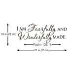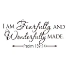 I AM Fearfully and Wonderfully Made Psalm 139:14 Vinyl Wall Decal Bible Scripture Inspirational Quotes Wall Art Religious Décor Measures 22 inches wide by 10 inches tall (55cm x 25cm) Made of matte finish Vinyl, it's removable but not reusable Includes step by step instruction, easy to apply Can be applied to any hard, smooth surface. Like wall, door, windows, furniture, will not peeling in long time (5 to 10 years usually) NOTICE: This is not that kind of black painted on see-through vinyl(which can be seen extra see-through vinyl shape around from certain angles), it is cutting black vinyl letters without extra shape Shipping We offer FREE shipping on all orders! We use a selection of shipping services such as UPS, FedEx, USPS etc. We only ship to the lower 48 states, no APO/FPO addresses or PO Boxes allowed. Local pickups and combined shipping options are not provided at this time. Return You can return a product for up to 30 days from the date you purchased it. Any product you return must be in the same condition you received it and in the original packaging. Please keep the receipt. Payment We accept payment by any of the following methods: PayPal Please pay as soon as possible after winning an auction, as that will allow us to post your item to you sooner! Feedback Customer satisfaction is very important to us. If you have any problem with your order, please contact us and we will do our best to make you satisfied. Contact Us If you have any queries, please contact us via ebay. We usually respond within 24 hours on weekdays. Please visit our eBay store to check out other items for sale! Thank you for shopping at our store.