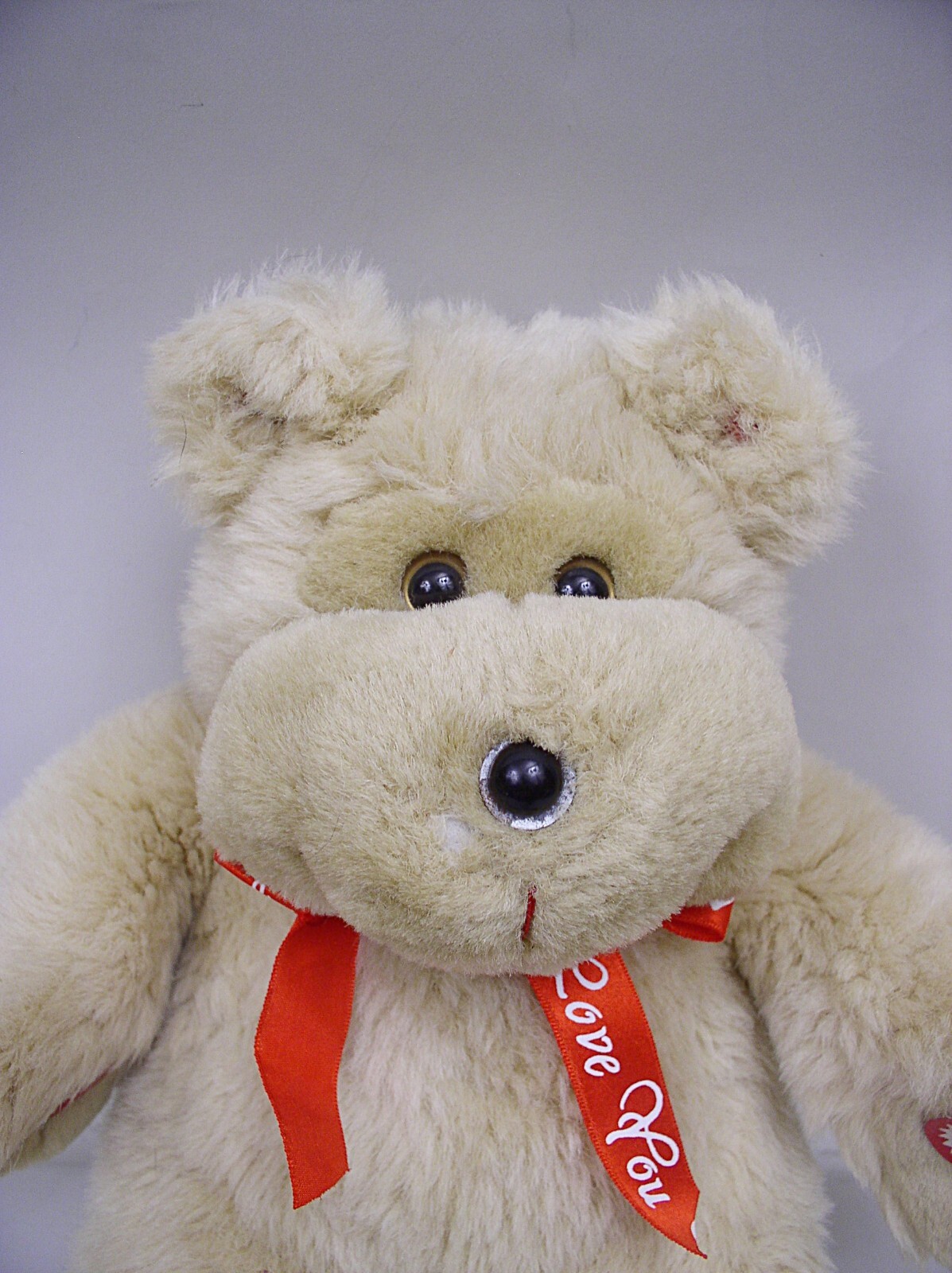 Welcome To My Dolly Dearest on eBay.....an experience in collecting! Plush I Love You Talking Teddy Bear by T.H. Toys HK LTD. I Love You Talking Teddy Bear designed and manufactured by T.H. Toys HK LTD. He is 10" tall (seated) and made of a tan plush with orange plastic eyes with black pupils, black plastic nose, and stitched mouth. He has red velvet claw pads and a red bow around his neck with "I Love You" in white. He has pads on each paw, that when pressed, he talks as his cheeks light up. Some of the things he says are: * "You're sweet as honey" * "Want a bear hug?" * "You brought me out of hibernation" * "Be my bearentine" He is previously owned and in beautiful working condition and comes with his original tush tag. He requires two "AA" batteries which are included. * * * * * * * * * * * * Shipping for this item is $12.50 in the lower 48 states and includes tracking * * * PLEASE NOTE: * * * Due to the alarming high rate of non-paying bidders, payment is required immediately after purchase. Every item is described in detail and is sold "as is" with no implied or inferred warranties or claims. Many items sold are vintage, used, or old store stock and may not be perfect. It may not be known if items are smoke or pet free and do our best to point out any defects or flaws. The photographs provided are also part of the description, so view them carefully. If something is not in the picture, do not assume it is included unless stated in the description. If in doubt, please send us a message through ebay's "contact seller" link. eBay is powered by feedback and we are very proud of our 100% positive feedback rating. In the event you are not completely satisfied with your purchase, please contact us DIRECTLY before opening a case with eBay or leaving negative/neutral feedback. We will do our best to make this a good experience for you on eBay.
