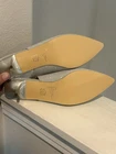 The I. Miller Women's Samaria Pointed Toe Kitten Heel Pumps in size 9.5M and silver color are stylish and elegant shoes perfect for parties or cocktail events. These pumps feature a low kitten heel for added comfort and a pointed toe shape that adds a touch of sophistication to any outfit. The synthetic upper material and adjustable features make them a versatile choice for summer and spring seasons. With a solid pattern and metallic theme, these pumps by I. Miller are a chic addition to any woman's shoe collection.