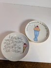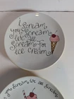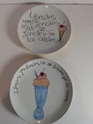 Pottery Barn (2) Appetizer/Salad plates See pictures for measurements microwave and dishwasher safe refer to pictures of plate with Blue graphics showing chips on back side of this plate with several "flea" bites. no original box or packaging