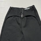 I.AM.GIA Carrie Pants Womens XXS Flare High Waist Cut Out Detail Low Rise Condition: Good used condition. Moderate wear with two small repaired stitches on the back waistband as shown in photos. No other major flaws noted. Material: Shell is 68% Rayon, 26% Nylon, 6% Polyester Features a striking cut-out waist design with metallic accent at front, rear zip closure, and flared leg silhouette Brand: I.AM.GIA, size tag: XXS Designed in Australia, made in China Care: Cold hand wash or cold gentle machine wash, dry flat, cool iron, do not bleach, do not tumble dry Tag measurements and ruler photos provided for reference
