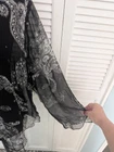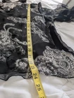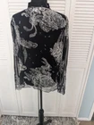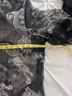 The ICE Top Women's 1X Black White Whimsigoth Feminine Fairycore Beaded Sheer Blouse is a stylish and whimsical top perfect for various occasions including travel, parties, casual outings, and business meetings. Slightly tapered, this has a side zipper for easy access. Made from a blend of polyester and rayon, this blouse features a floral pattern with embroidered accents, long slit sleeves, and a scoop neckline. The black, white, and gray color combination gives it a unique and feminine look, while the lightweight and sheer fabric adds a touch of elegance. Ideal for wearing during the spring, summer, or fall seasons, this blouse from ICE is sure to make a statement. Hand wash only to maintain its quality.