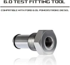 Features: 1. Fitment: Perfectly work on Ford 6.0L powerstroke diesel high pressure oil system. 2. High Quality: High Quality Machined from Brass or Steel with excellent mechanical and physical properties, these adapter fittings show their high tightness, corrosion resistance and durability. 3. Oil Rail Adapters: Both brass adapters use standard 1/4" NPT air hose connection, which allow observation of the High Pressure Oil System's Injector Control Pressure (ICP) by direct gauge connection, and facilitate testing of the High Pressure Oil System for leaks using shop air. 4. IPR Valve Air Test Fitting: This tool has 1/4 inch pipe threads to accept standard air fittings; It takes the place of the IPR valve meaning that the system can be completely sealed so that even the smallest leaks can be detected. 5. 100% Satisfaction Guarantee: If you're not 100% satisfied with our tools, simply return it for a full refund in 60 days. Premium Support & 12-Month Warranty. Notes for usage: 1.The complete system can be tested in under 20 minutes - in a professional repair facility this tool will pay for itself after one or two repairs. To connect, just remove the air cleaner, FICM, and coolant degas bottle (Turbo removal is NOT required). Remove the IPR valve and thread in the tool, hand tightening using the hose is sufficient. 2.Connect shop air and listen for leaks. To locate the smallest leaks close the shutoff valve on the tool to seal the system. If desired a scan tool can be used to monitor air pressure in the system by observing the ICP sensor reading. This is not a required step. 3.To prevent costly combacks we recommend air checking every 6.0L for high pressure oil leaks after any part of the system has been disassembled. Warnings: 1. Our tool has 1/4 inch pipe threads to accept standard air fittings. You will need to add your own air line quick-connect fitting. 2. Avoid cranking the engine with this tool connected since the IPR valve is not in place to provide pressure relief, the high pressure oil pump would effectively be dead-headed and pump, system, tool, or personal damage could result. 3. Always wear protective eye-wear. This tool is intended for usage by trained professionals. By using it you are certifying that you have the necessary skills and training to do so safely. Package Included: 1 x Air Test Fitting Tool 2 x Oil Rail Adapters